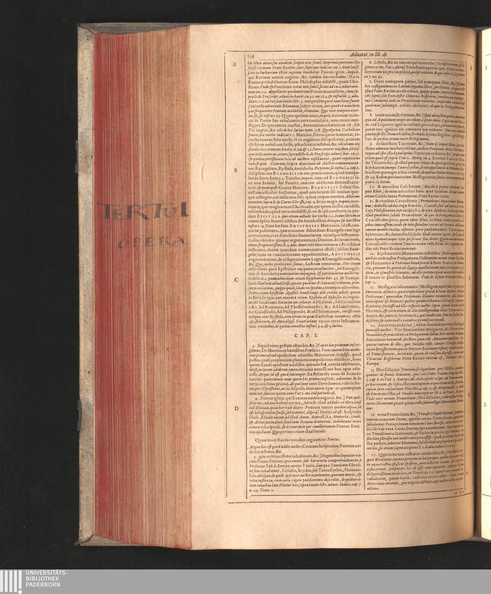 Q. Septimii Florentis Tertvlliani Carthaginiensis Presbyteri, Opera Qvæ Hactenvs Reperiri Potvervnt Omnia : Iam Postremvm, Ad Exemplaria manuscripta collatione facta, quàm accuratiss. recognita, aliquot etiam libris auctiora; nunc primùm in capita, & certo ordine, habita quantum fieri potuit temporum ratione, in quinque Tomos distincta / Cum Iacobi Pamelii Brvgensis, Theologi, Archidiaconi Audomaropolitani, Argumentis & Adnotationibus toti operi interiectis, quibus tum loci obscuriores explicantur, tum quicquid ad Antiquitatem Ecclesiasticam spectat, illustratur ... Acceßère & Loci ex coniectura Latini Latinii Viterbiensis restituti, & erudita in lib. de Pallio Joannis Mercerii Antecessoris Bituricensis Commentaria