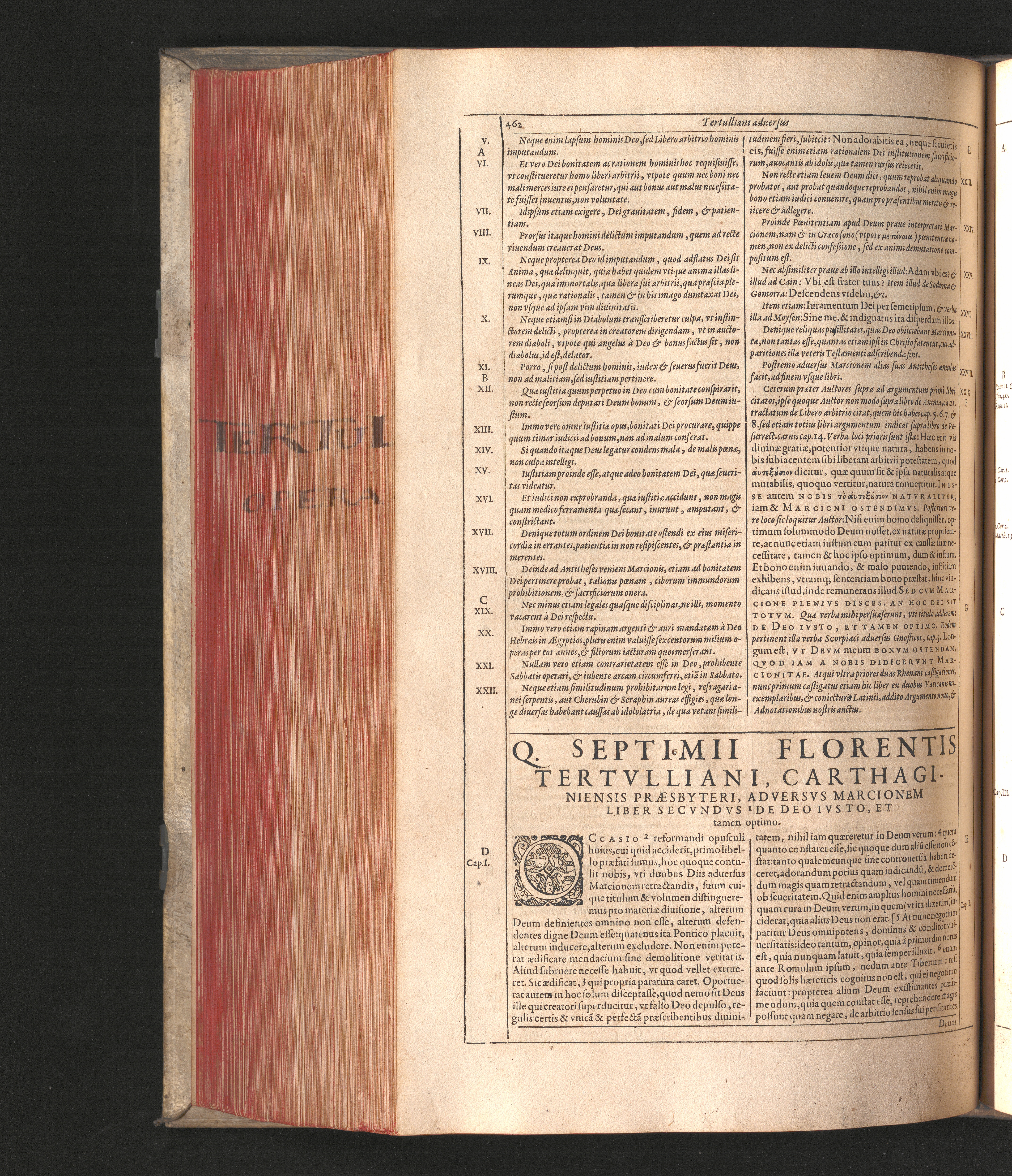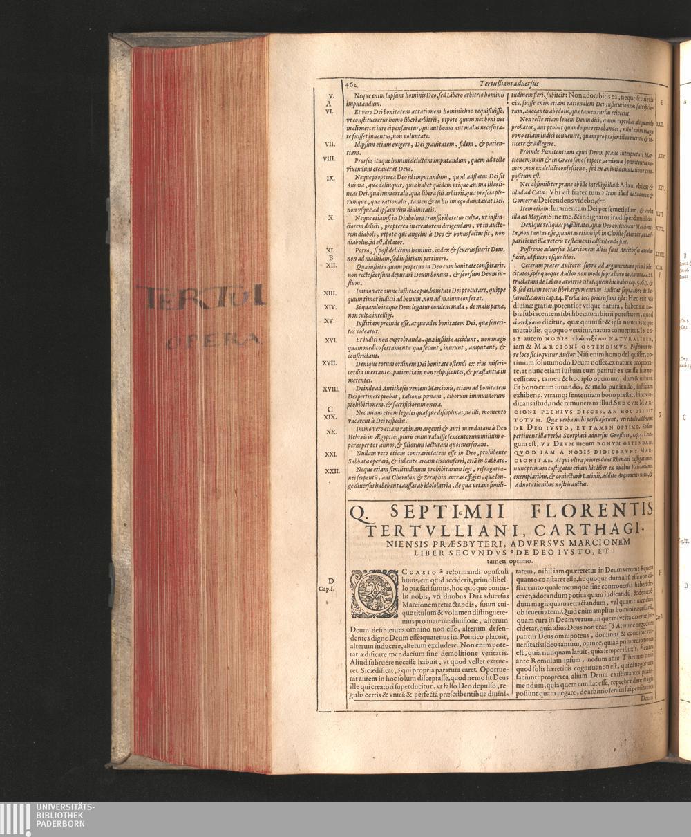 Q. Septimii Florentis Tertvlliani Carthaginiensis Presbyteri, Opera Qvæ Hactenvs Reperiri Potvervnt Omnia : Iam Postremvm, Ad Exemplaria manuscripta collatione facta, quàm accuratiss. recognita, aliquot etiam libris auctiora; nunc primùm in capita, & certo ordine, habita quantum fieri potuit temporum ratione, in quinque Tomos distincta / Cum Iacobi Pamelii Brvgensis, Theologi, Archidiaconi Audomaropolitani, Argumentis & Adnotationibus toti operi interiectis, quibus tum loci obscuriores explicantur, tum quicquid ad Antiquitatem Ecclesiasticam spectat, illustratur ... Acceßère & Loci ex coniectura Latini Latinii Viterbiensis restituti, & erudita in lib. de Pallio Joannis Mercerii Antecessoris Bituricensis Commentaria