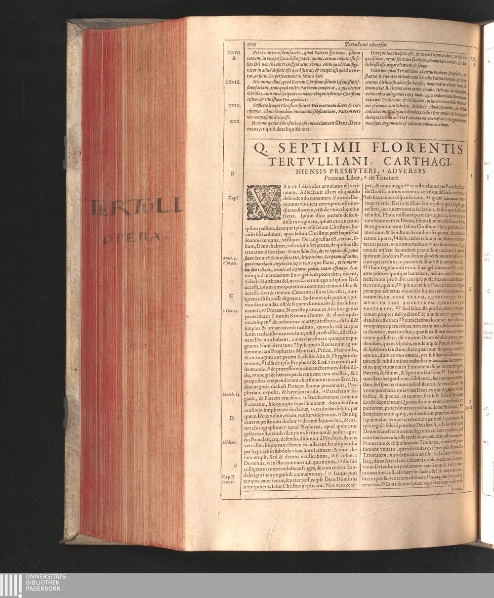 Q. Septimii Florentis Tertvlliani Carthaginiensis Presbyteri, Opera Qvæ Hactenvs Reperiri Potvervnt Omnia : Iam Postremvm, Ad Exemplaria manuscripta collatione facta, quàm accuratiss. recognita, aliquot etiam libris auctiora; nunc primùm in capita, & certo ordine, habita quantum fieri potuit temporum ratione, in quinque Tomos distincta / Cum Iacobi Pamelii Brvgensis, Theologi, Archidiaconi Audomaropolitani, Argumentis & Adnotationibus toti operi interiectis, quibus tum loci obscuriores explicantur, tum quicquid ad Antiquitatem Ecclesiasticam spectat, illustratur ... Acceßère & Loci ex coniectura Latini Latinii Viterbiensis restituti, & erudita in lib. de Pallio Joannis Mercerii Antecessoris Bituricensis Commentaria