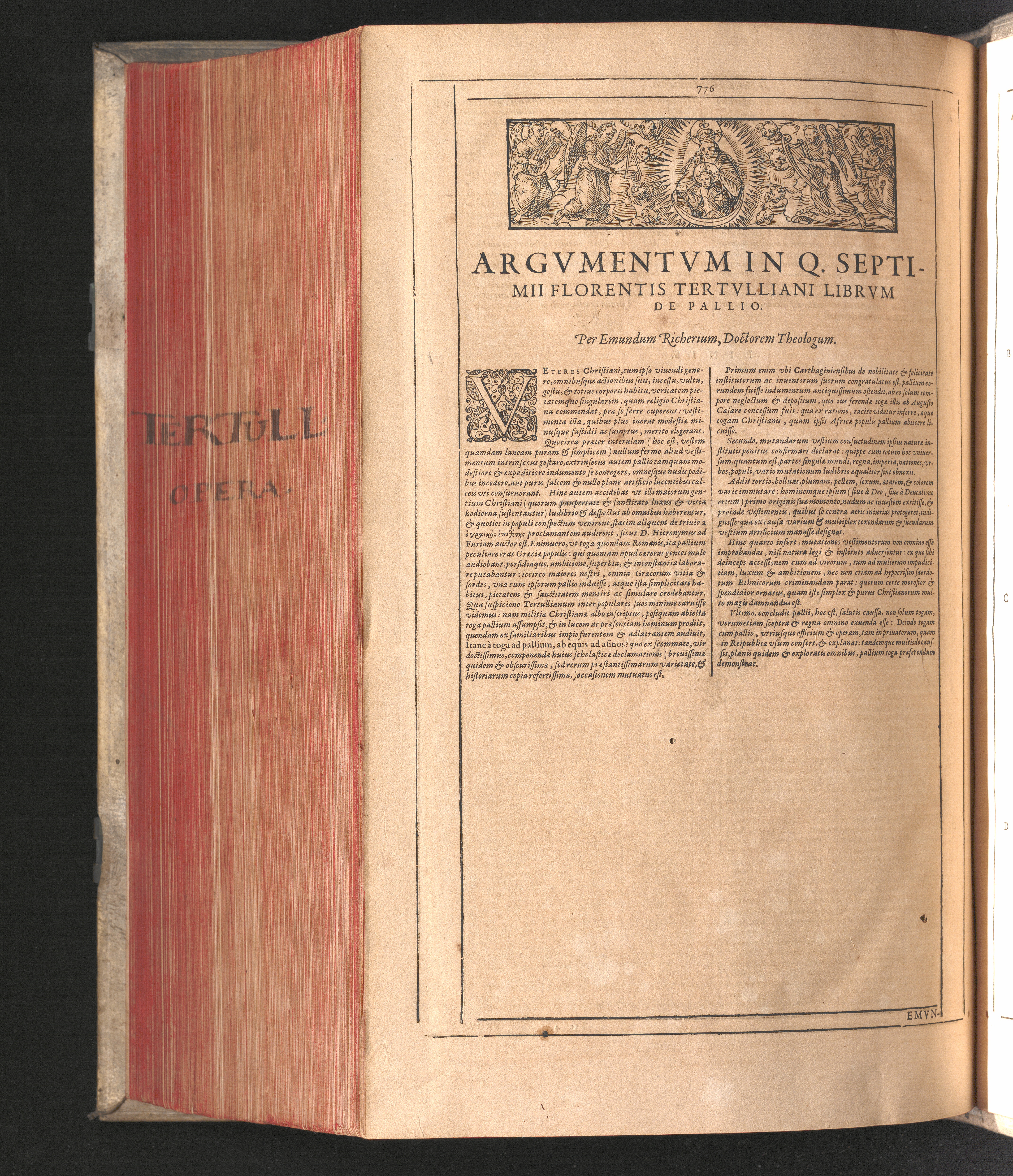Q. Septimii Florentis Tertvlliani Carthaginiensis Presbyteri, Opera Qvæ Hactenvs Reperiri Potvervnt Omnia : Iam Postremvm, Ad Exemplaria manuscripta collatione facta, quàm accuratiss. recognita, aliquot etiam libris auctiora; nunc primùm in capita, & certo ordine, habita quantum fieri potuit temporum ratione, in quinque Tomos distincta / Cum Iacobi Pamelii Brvgensis, Theologi, Archidiaconi Audomaropolitani, Argumentis & Adnotationibus toti operi interiectis, quibus tum loci obscuriores explicantur, tum quicquid ad Antiquitatem Ecclesiasticam spectat, illustratur ... Acceßère & Loci ex coniectura Latini Latinii Viterbiensis restituti, & erudita in lib. de Pallio Joannis Mercerii Antecessoris Bituricensis Commentaria