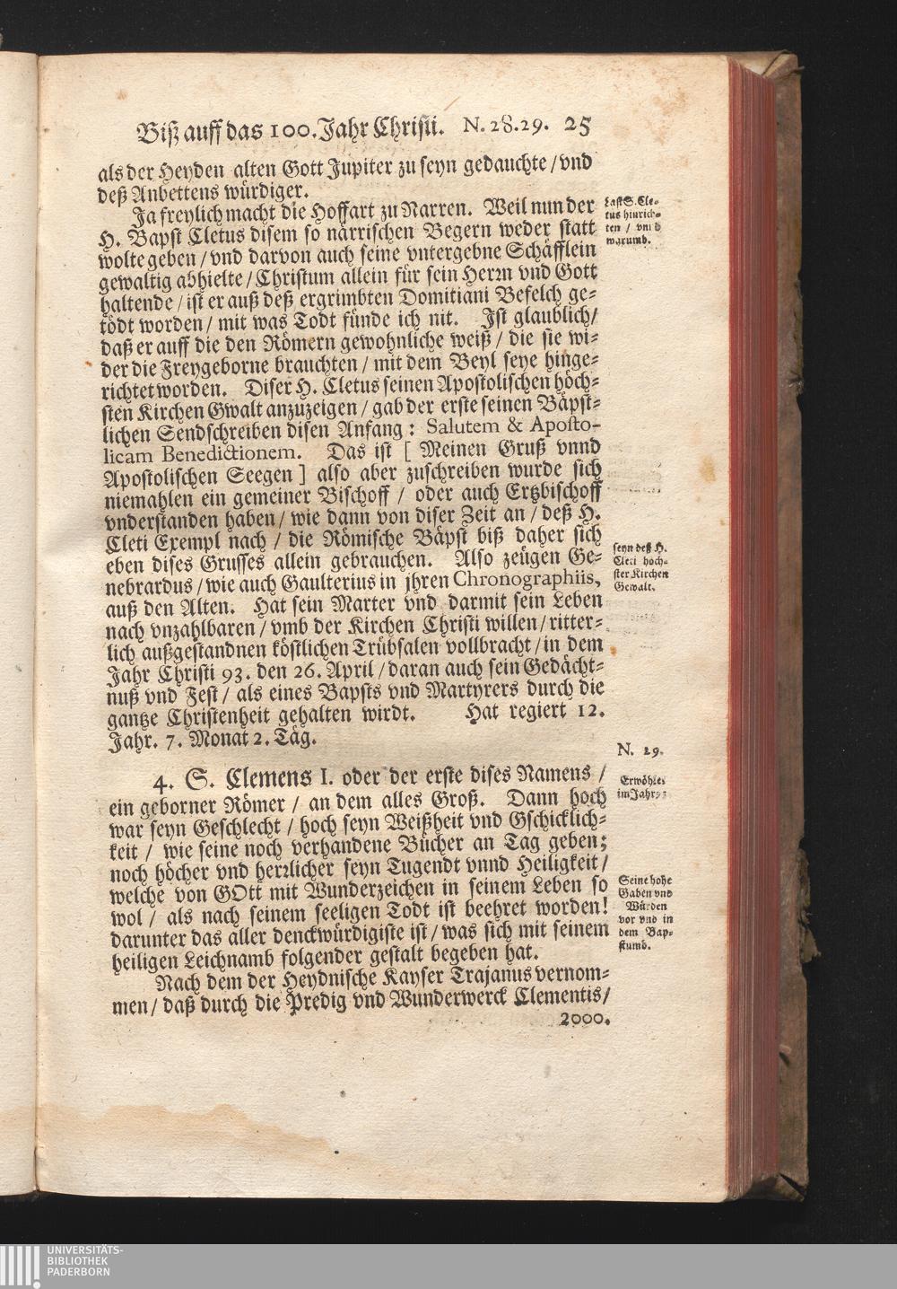 Roma Gloriosa, oder Das Glorwürdige Rom In seinen Zweyhundert Drey vnd Viertzig Bäpsten. Daß ist/ Römische Bäpst/ angefangen von S. Peter Biß auff den heutiges Tags glorwürdig regierenden vnseren Allerheiligsten Vatter Clemens Den Zehenden : Deren aller hart angefochtene Ehr vnd Ruhm/ neben erzehlung ihrer glorwürdigen Thaten/ in disem Tractat verfochten wird/ wider die grausame/ durchauß vngegründte vilfältige Schmach-Reden ihrer Feinden/ die auß disen wahrhafften Statthaltern Christi/ lauter Antichristen/ Zwar vergebens/ gantz lächerlich/ vnd vngeschickt wöllen machen ... / In Druck gegeben von Christophoro Ott Auß der Gesellschafft Jesu Priestern