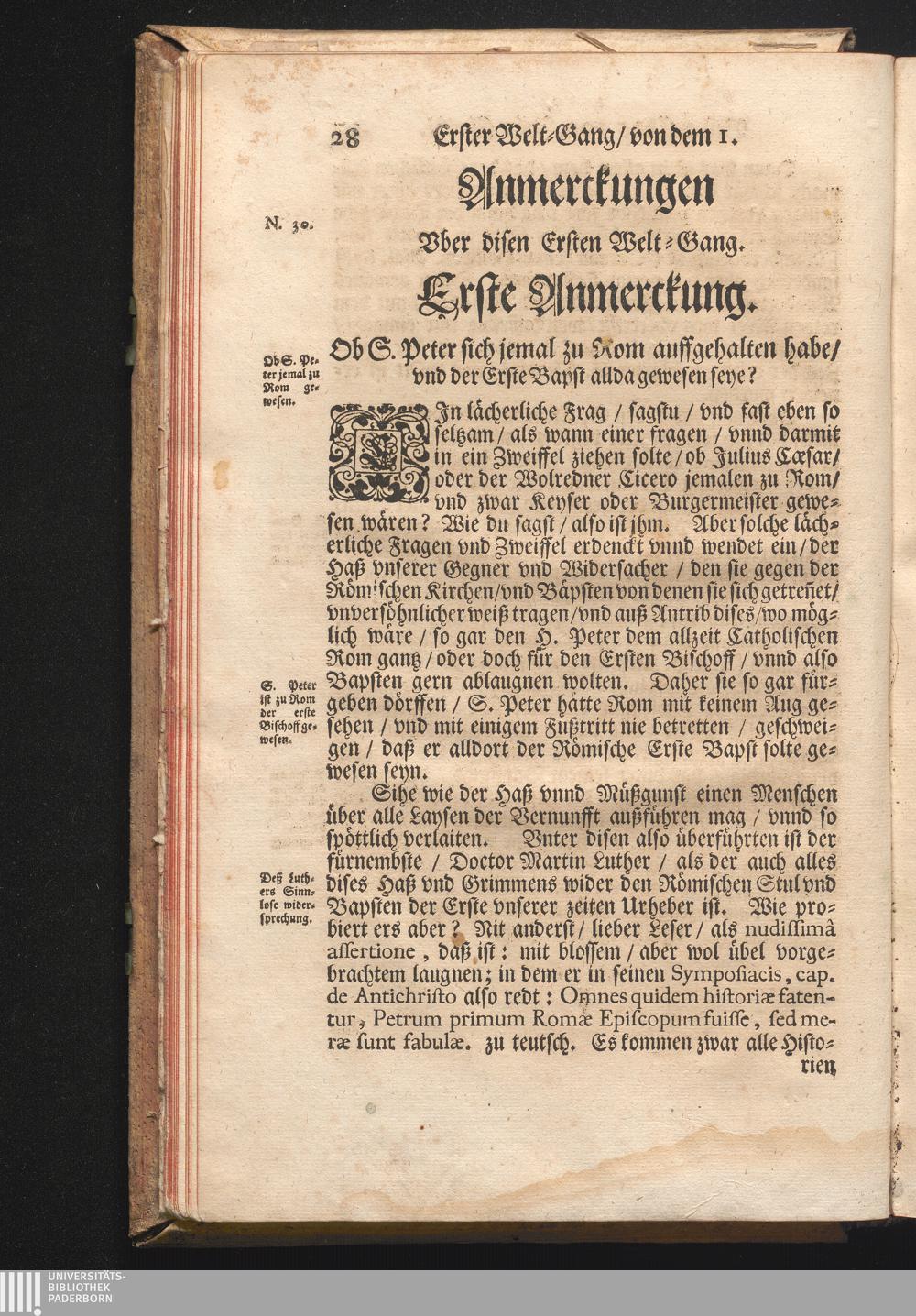 Roma Gloriosa, oder Das Glorwürdige Rom In seinen Zweyhundert Drey vnd Viertzig Bäpsten. Daß ist/ Römische Bäpst/ angefangen von S. Peter Biß auff den heutiges Tags glorwürdig regierenden vnseren Allerheiligsten Vatter Clemens Den Zehenden : Deren aller hart angefochtene Ehr vnd Ruhm/ neben erzehlung ihrer glorwürdigen Thaten/ in disem Tractat verfochten wird/ wider die grausame/ durchauß vngegründte vilfältige Schmach-Reden ihrer Feinden/ die auß disen wahrhafften Statthaltern Christi/ lauter Antichristen/ Zwar vergebens/ gantz lächerlich/ vnd vngeschickt wöllen machen ... / In Druck gegeben von Christophoro Ott Auß der Gesellschafft Jesu Priestern