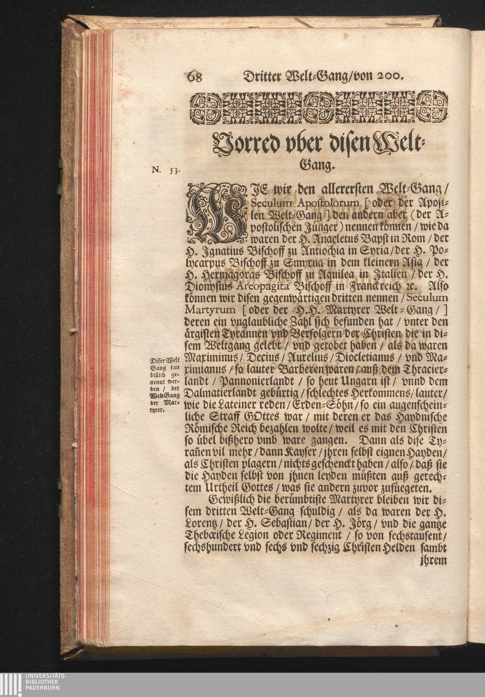 Roma Gloriosa, oder Das Glorwürdige Rom In seinen Zweyhundert Drey vnd Viertzig Bäpsten. Daß ist/ Römische Bäpst/ angefangen von S. Peter Biß auff den heutiges Tags glorwürdig regierenden vnseren Allerheiligsten Vatter Clemens Den Zehenden : Deren aller hart angefochtene Ehr vnd Ruhm/ neben erzehlung ihrer glorwürdigen Thaten/ in disem Tractat verfochten wird/ wider die grausame/ durchauß vngegründte vilfältige Schmach-Reden ihrer Feinden/ die auß disen wahrhafften Statthaltern Christi/ lauter Antichristen/ Zwar vergebens/ gantz lächerlich/ vnd vngeschickt wöllen machen ... / In Druck gegeben von Christophoro Ott Auß der Gesellschafft Jesu Priestern
