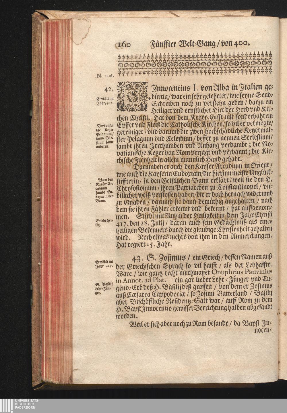 Roma Gloriosa, oder Das Glorwürdige Rom In seinen Zweyhundert Drey vnd Viertzig Bäpsten. Daß ist/ Römische Bäpst/ angefangen von S. Peter Biß auff den heutiges Tags glorwürdig regierenden vnseren Allerheiligsten Vatter Clemens Den Zehenden : Deren aller hart angefochtene Ehr vnd Ruhm/ neben erzehlung ihrer glorwürdigen Thaten/ in disem Tractat verfochten wird/ wider die grausame/ durchauß vngegründte vilfältige Schmach-Reden ihrer Feinden/ die auß disen wahrhafften Statthaltern Christi/ lauter Antichristen/ Zwar vergebens/ gantz lächerlich/ vnd vngeschickt wöllen machen ... / In Druck gegeben von Christophoro Ott Auß der Gesellschafft Jesu Priestern