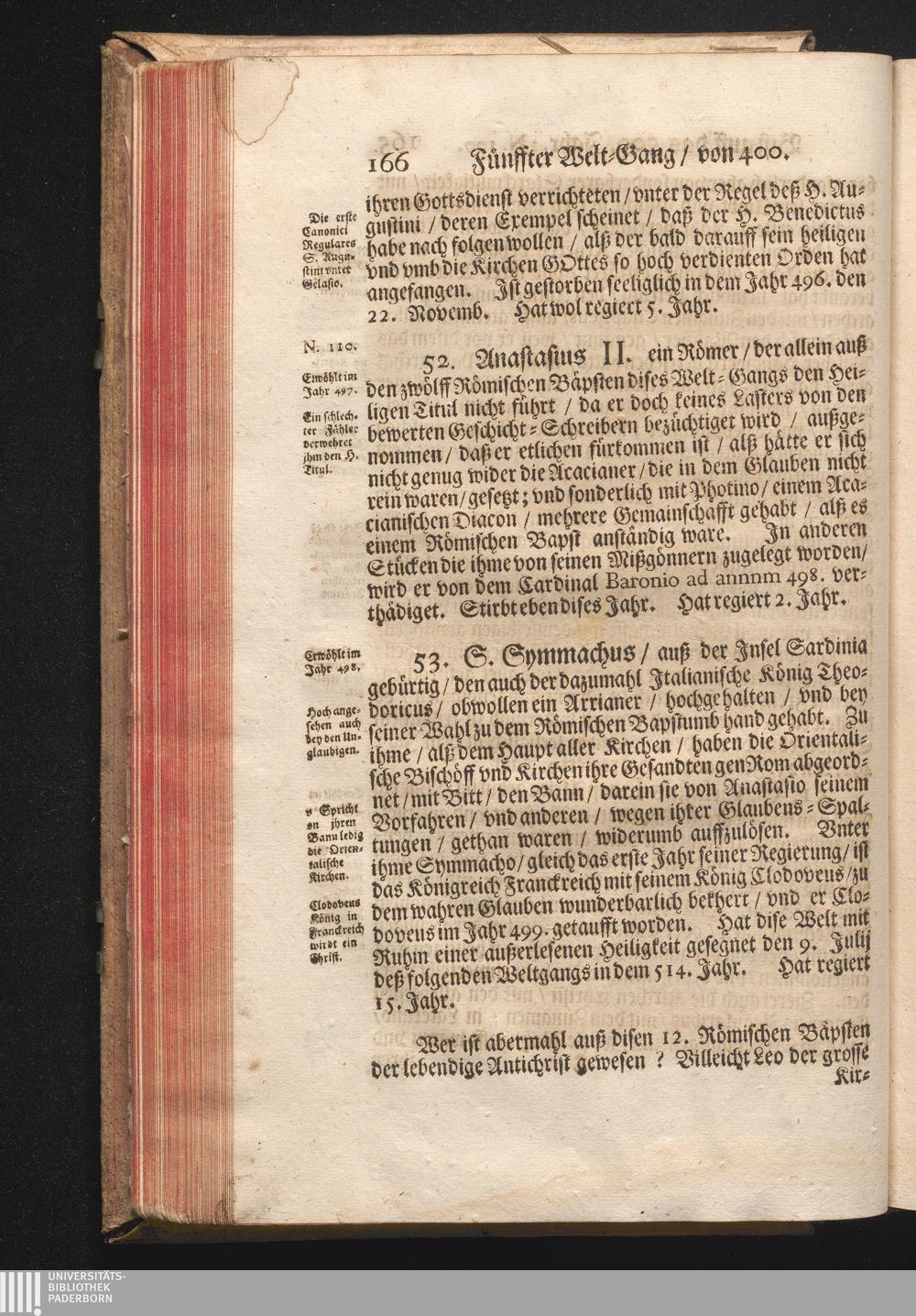 Roma Gloriosa, oder Das Glorwürdige Rom In seinen Zweyhundert Drey vnd Viertzig Bäpsten. Daß ist/ Römische Bäpst/ angefangen von S. Peter Biß auff den heutiges Tags glorwürdig regierenden vnseren Allerheiligsten Vatter Clemens Den Zehenden : Deren aller hart angefochtene Ehr vnd Ruhm/ neben erzehlung ihrer glorwürdigen Thaten/ in disem Tractat verfochten wird/ wider die grausame/ durchauß vngegründte vilfältige Schmach-Reden ihrer Feinden/ die auß disen wahrhafften Statthaltern Christi/ lauter Antichristen/ Zwar vergebens/ gantz lächerlich/ vnd vngeschickt wöllen machen ... / In Druck gegeben von Christophoro Ott Auß der Gesellschafft Jesu Priestern