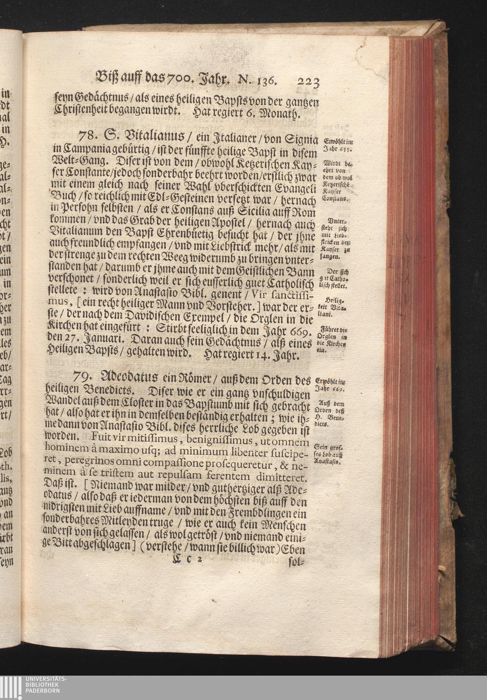 Roma Gloriosa, oder Das Glorwürdige Rom In seinen Zweyhundert Drey vnd Viertzig Bäpsten. Daß ist/ Römische Bäpst/ angefangen von S. Peter Biß auff den heutiges Tags glorwürdig regierenden vnseren Allerheiligsten Vatter Clemens Den Zehenden : Deren aller hart angefochtene Ehr vnd Ruhm/ neben erzehlung ihrer glorwürdigen Thaten/ in disem Tractat verfochten wird/ wider die grausame/ durchauß vngegründte vilfältige Schmach-Reden ihrer Feinden/ die auß disen wahrhafften Statthaltern Christi/ lauter Antichristen/ Zwar vergebens/ gantz lächerlich/ vnd vngeschickt wöllen machen ... / In Druck gegeben von Christophoro Ott Auß der Gesellschafft Jesu Priestern