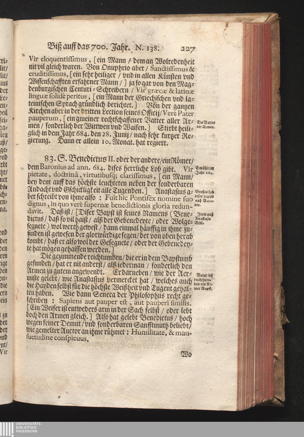Roma Gloriosa, oder Das Glorwürdige Rom In seinen Zweyhundert Drey vnd Viertzig Bäpsten. Daß ist/ Römische Bäpst/ angefangen von S. Peter Biß auff den heutiges Tags glorwürdig regierenden vnseren Allerheiligsten Vatter Clemens Den Zehenden : Deren aller hart angefochtene Ehr vnd Ruhm/ neben erzehlung ihrer glorwürdigen Thaten/ in disem Tractat verfochten wird/ wider die grausame/ durchauß vngegründte vilfältige Schmach-Reden ihrer Feinden/ die auß disen wahrhafften Statthaltern Christi/ lauter Antichristen/ Zwar vergebens/ gantz lächerlich/ vnd vngeschickt wöllen machen ... / In Druck gegeben von Christophoro Ott Auß der Gesellschafft Jesu Priestern