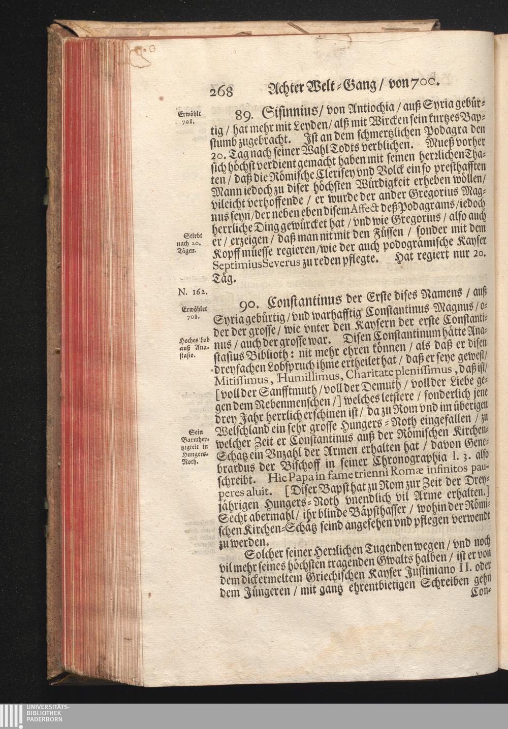 Roma Gloriosa, oder Das Glorwürdige Rom In seinen Zweyhundert Drey vnd Viertzig Bäpsten. Daß ist/ Römische Bäpst/ angefangen von S. Peter Biß auff den heutiges Tags glorwürdig regierenden vnseren Allerheiligsten Vatter Clemens Den Zehenden : Deren aller hart angefochtene Ehr vnd Ruhm/ neben erzehlung ihrer glorwürdigen Thaten/ in disem Tractat verfochten wird/ wider die grausame/ durchauß vngegründte vilfältige Schmach-Reden ihrer Feinden/ die auß disen wahrhafften Statthaltern Christi/ lauter Antichristen/ Zwar vergebens/ gantz lächerlich/ vnd vngeschickt wöllen machen ... / In Druck gegeben von Christophoro Ott Auß der Gesellschafft Jesu Priestern