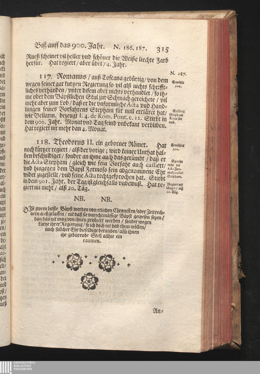 Roma Gloriosa, oder Das Glorwürdige Rom In seinen Zweyhundert Drey vnd Viertzig Bäpsten. Daß ist/ Römische Bäpst/ angefangen von S. Peter Biß auff den heutiges Tags glorwürdig regierenden vnseren Allerheiligsten Vatter Clemens Den Zehenden : Deren aller hart angefochtene Ehr vnd Ruhm/ neben erzehlung ihrer glorwürdigen Thaten/ in disem Tractat verfochten wird/ wider die grausame/ durchauß vngegründte vilfältige Schmach-Reden ihrer Feinden/ die auß disen wahrhafften Statthaltern Christi/ lauter Antichristen/ Zwar vergebens/ gantz lächerlich/ vnd vngeschickt wöllen machen ... / In Druck gegeben von Christophoro Ott Auß der Gesellschafft Jesu Priestern