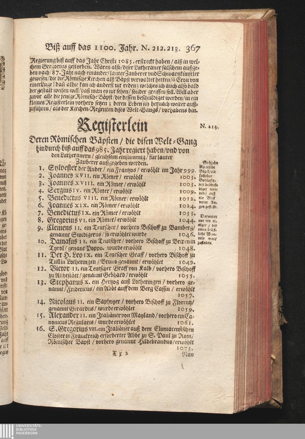 Roma Gloriosa, oder Das Glorwürdige Rom In seinen Zweyhundert Drey vnd Viertzig Bäpsten. Daß ist/ Römische Bäpst/ angefangen von S. Peter Biß auff den heutiges Tags glorwürdig regierenden vnseren Allerheiligsten Vatter Clemens Den Zehenden : Deren aller hart angefochtene Ehr vnd Ruhm/ neben erzehlung ihrer glorwürdigen Thaten/ in disem Tractat verfochten wird/ wider die grausame/ durchauß vngegründte vilfältige Schmach-Reden ihrer Feinden/ die auß disen wahrhafften Statthaltern Christi/ lauter Antichristen/ Zwar vergebens/ gantz lächerlich/ vnd vngeschickt wöllen machen ... / In Druck gegeben von Christophoro Ott Auß der Gesellschafft Jesu Priestern