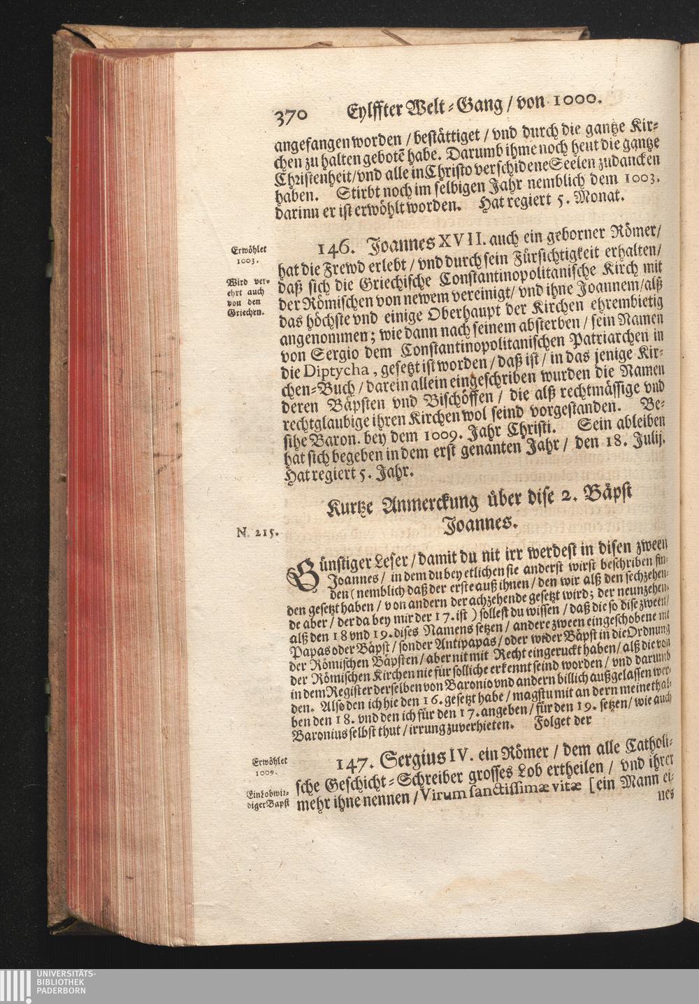 Roma Gloriosa, oder Das Glorwürdige Rom In seinen Zweyhundert Drey vnd Viertzig Bäpsten. Daß ist/ Römische Bäpst/ angefangen von S. Peter Biß auff den heutiges Tags glorwürdig regierenden vnseren Allerheiligsten Vatter Clemens Den Zehenden : Deren aller hart angefochtene Ehr vnd Ruhm/ neben erzehlung ihrer glorwürdigen Thaten/ in disem Tractat verfochten wird/ wider die grausame/ durchauß vngegründte vilfältige Schmach-Reden ihrer Feinden/ die auß disen wahrhafften Statthaltern Christi/ lauter Antichristen/ Zwar vergebens/ gantz lächerlich/ vnd vngeschickt wöllen machen ... / In Druck gegeben von Christophoro Ott Auß der Gesellschafft Jesu Priestern