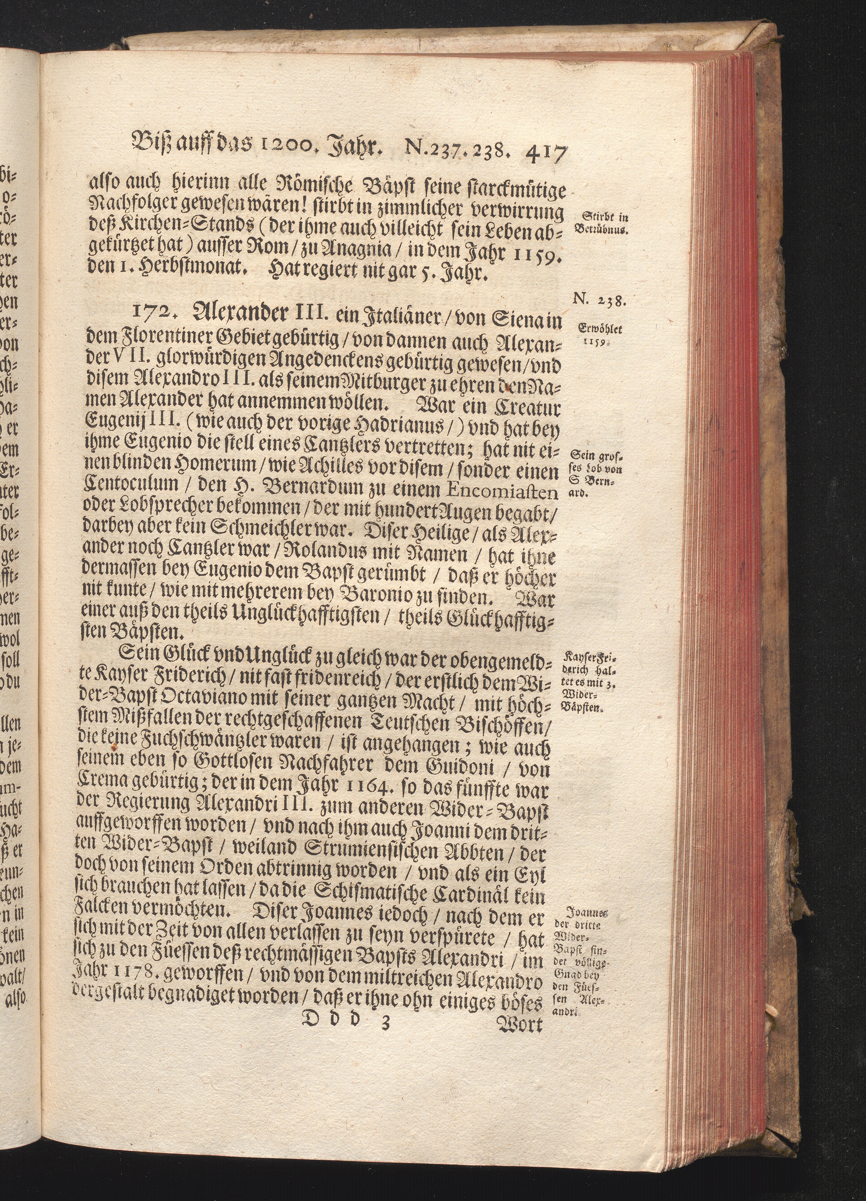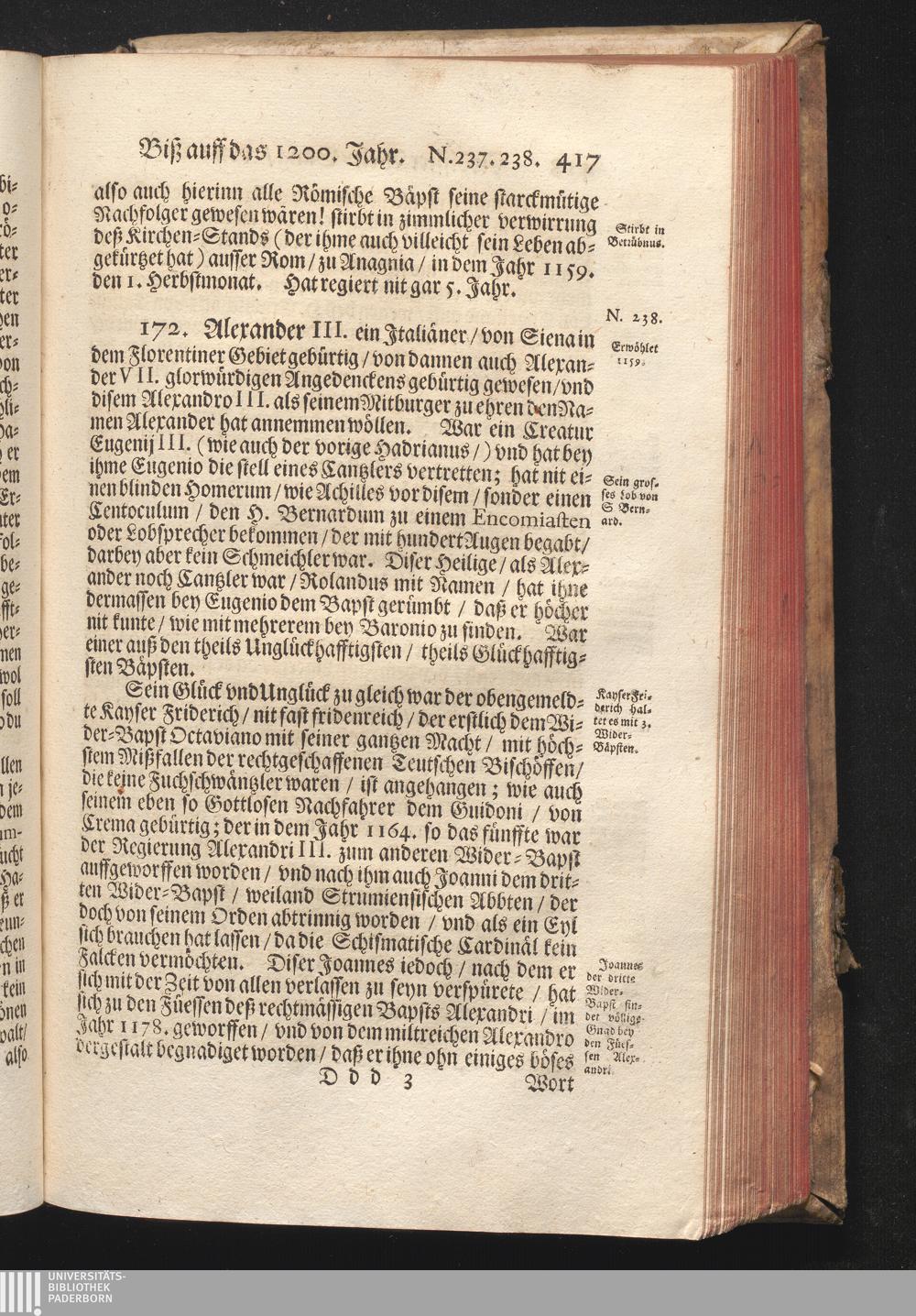 Roma Gloriosa, oder Das Glorwürdige Rom In seinen Zweyhundert Drey vnd Viertzig Bäpsten. Daß ist/ Römische Bäpst/ angefangen von S. Peter Biß auff den heutiges Tags glorwürdig regierenden vnseren Allerheiligsten Vatter Clemens Den Zehenden : Deren aller hart angefochtene Ehr vnd Ruhm/ neben erzehlung ihrer glorwürdigen Thaten/ in disem Tractat verfochten wird/ wider die grausame/ durchauß vngegründte vilfältige Schmach-Reden ihrer Feinden/ die auß disen wahrhafften Statthaltern Christi/ lauter Antichristen/ Zwar vergebens/ gantz lächerlich/ vnd vngeschickt wöllen machen ... / In Druck gegeben von Christophoro Ott Auß der Gesellschafft Jesu Priestern