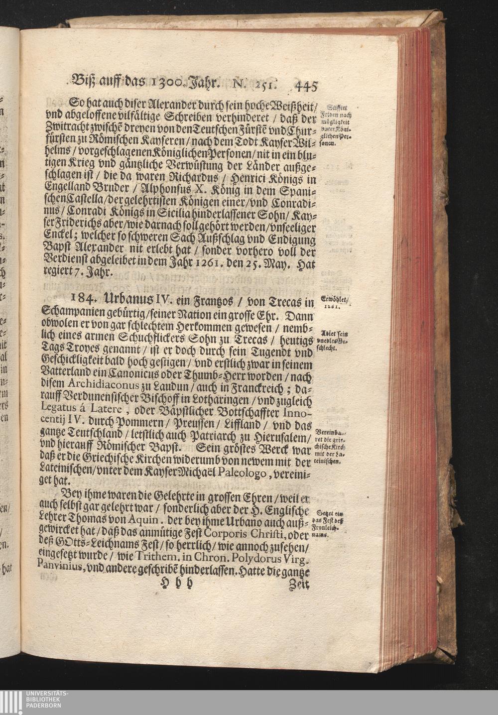 Roma Gloriosa, oder Das Glorwürdige Rom In seinen Zweyhundert Drey vnd Viertzig Bäpsten. Daß ist/ Römische Bäpst/ angefangen von S. Peter Biß auff den heutiges Tags glorwürdig regierenden vnseren Allerheiligsten Vatter Clemens Den Zehenden : Deren aller hart angefochtene Ehr vnd Ruhm/ neben erzehlung ihrer glorwürdigen Thaten/ in disem Tractat verfochten wird/ wider die grausame/ durchauß vngegründte vilfältige Schmach-Reden ihrer Feinden/ die auß disen wahrhafften Statthaltern Christi/ lauter Antichristen/ Zwar vergebens/ gantz lächerlich/ vnd vngeschickt wöllen machen ... / In Druck gegeben von Christophoro Ott Auß der Gesellschafft Jesu Priestern