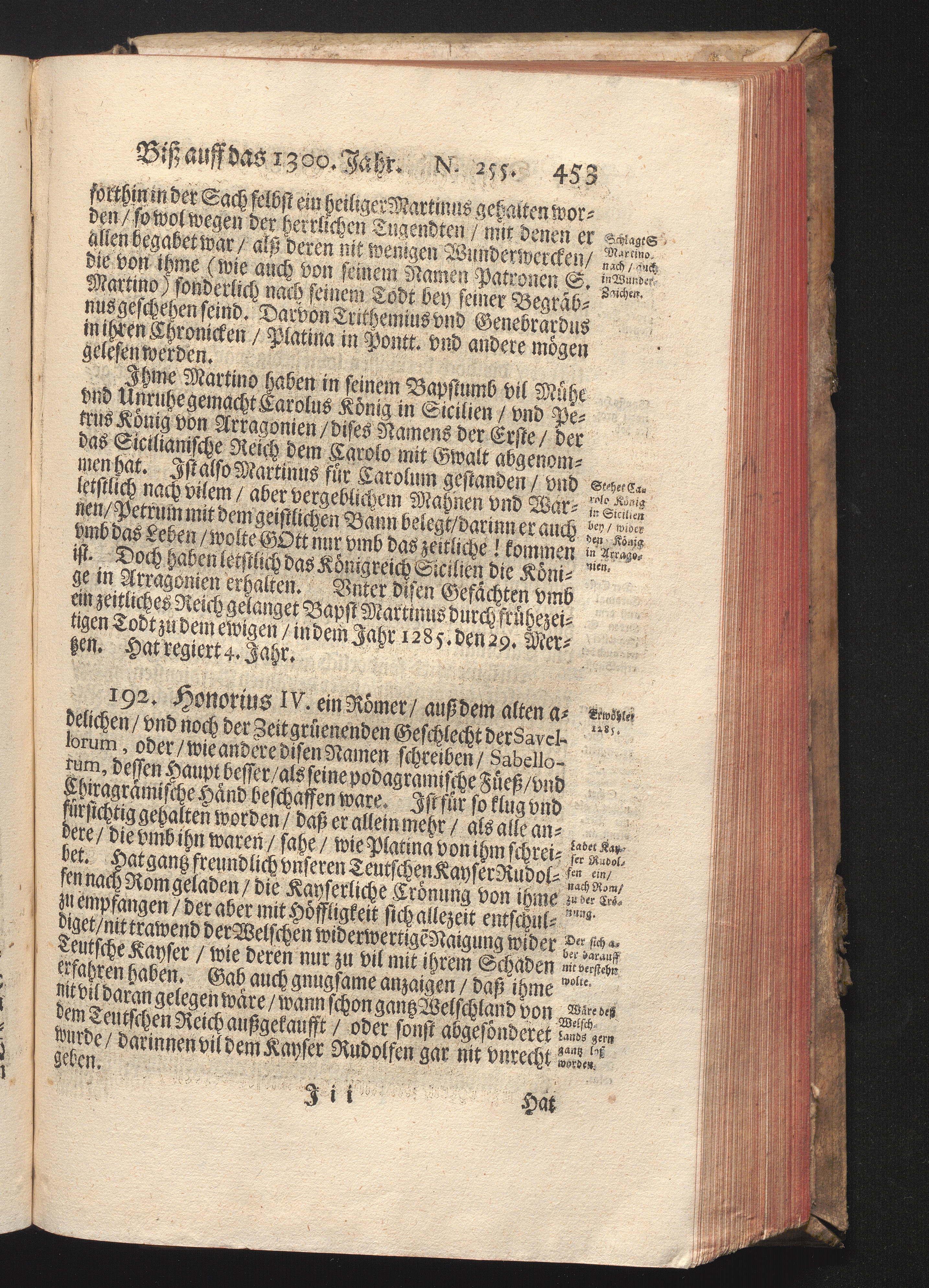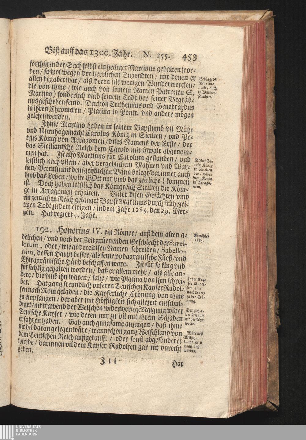Roma Gloriosa, oder Das Glorwürdige Rom In seinen Zweyhundert Drey vnd Viertzig Bäpsten. Daß ist/ Römische Bäpst/ angefangen von S. Peter Biß auff den heutiges Tags glorwürdig regierenden vnseren Allerheiligsten Vatter Clemens Den Zehenden : Deren aller hart angefochtene Ehr vnd Ruhm/ neben erzehlung ihrer glorwürdigen Thaten/ in disem Tractat verfochten wird/ wider die grausame/ durchauß vngegründte vilfältige Schmach-Reden ihrer Feinden/ die auß disen wahrhafften Statthaltern Christi/ lauter Antichristen/ Zwar vergebens/ gantz lächerlich/ vnd vngeschickt wöllen machen ... / In Druck gegeben von Christophoro Ott Auß der Gesellschafft Jesu Priestern