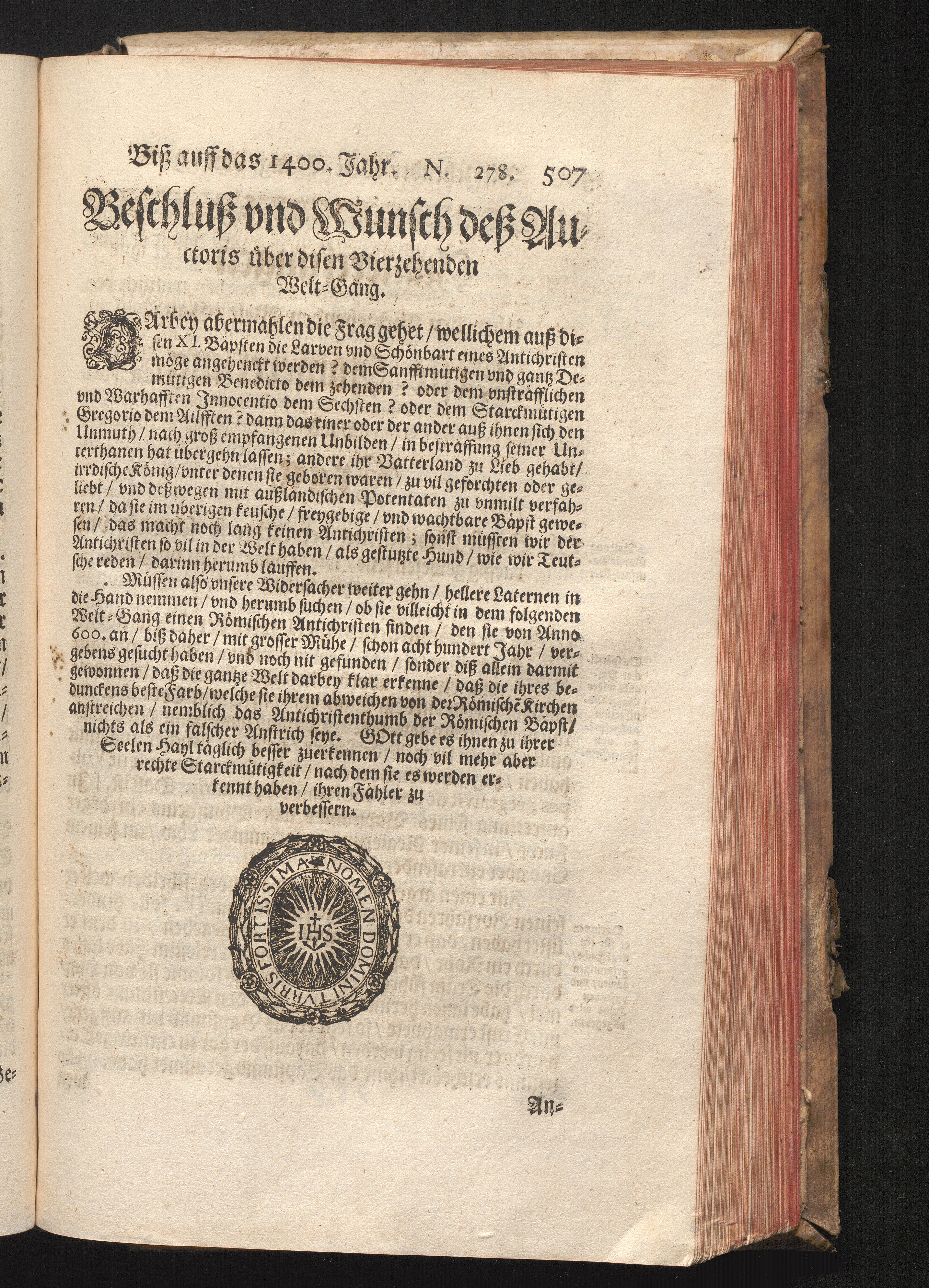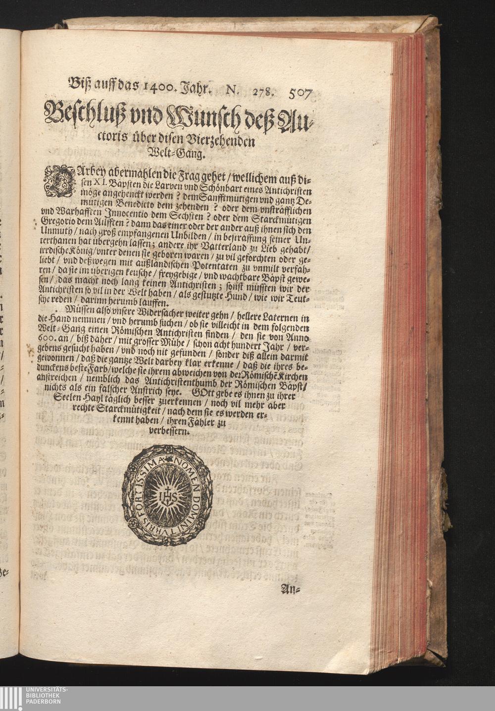 Roma Gloriosa, oder Das Glorwürdige Rom In seinen Zweyhundert Drey vnd Viertzig Bäpsten. Daß ist/ Römische Bäpst/ angefangen von S. Peter Biß auff den heutiges Tags glorwürdig regierenden vnseren Allerheiligsten Vatter Clemens Den Zehenden : Deren aller hart angefochtene Ehr vnd Ruhm/ neben erzehlung ihrer glorwürdigen Thaten/ in disem Tractat verfochten wird/ wider die grausame/ durchauß vngegründte vilfältige Schmach-Reden ihrer Feinden/ die auß disen wahrhafften Statthaltern Christi/ lauter Antichristen/ Zwar vergebens/ gantz lächerlich/ vnd vngeschickt wöllen machen ... / In Druck gegeben von Christophoro Ott Auß der Gesellschafft Jesu Priestern