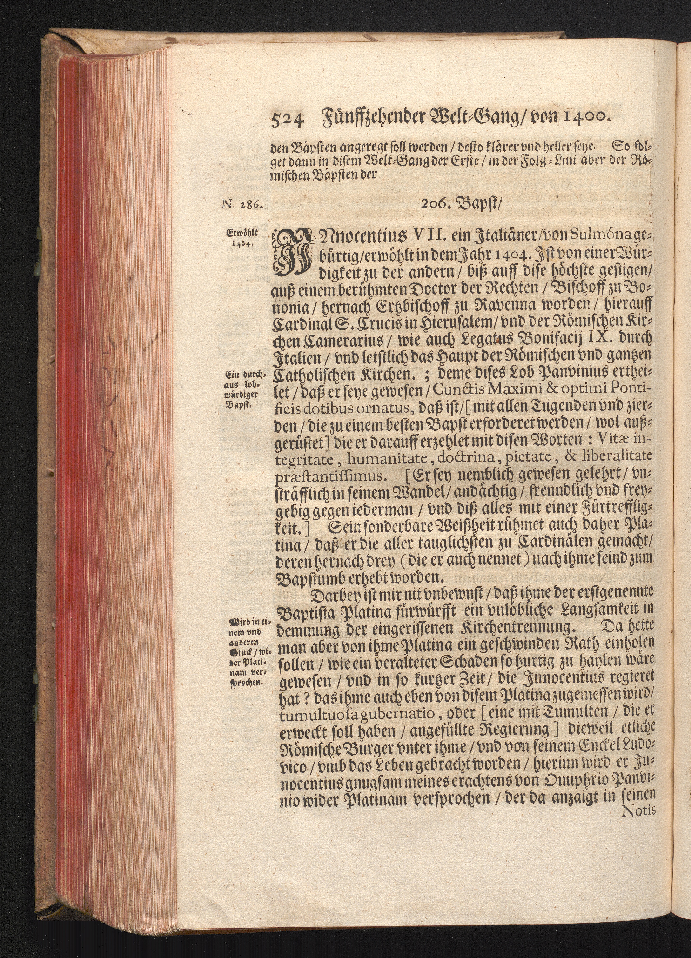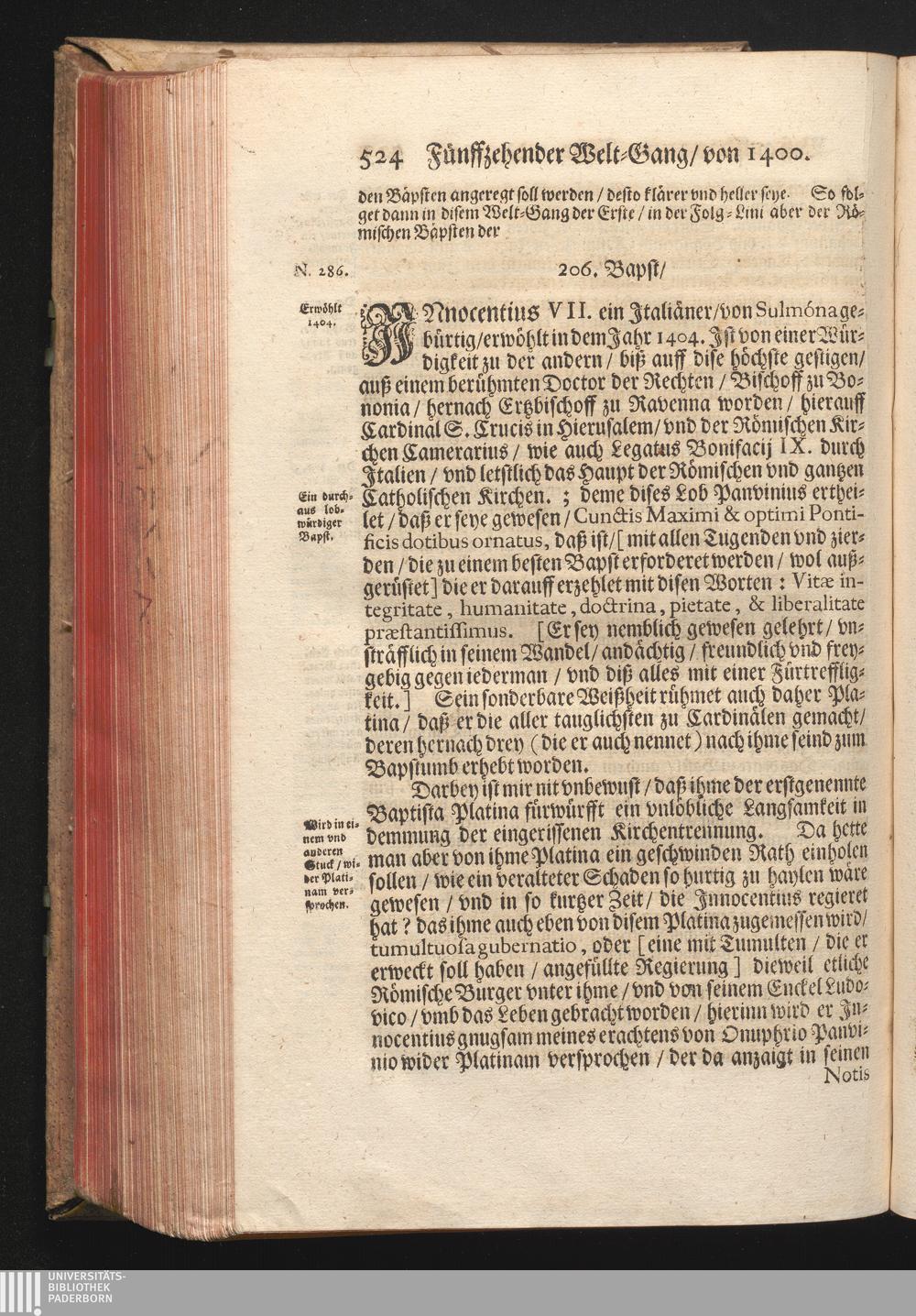 Roma Gloriosa, oder Das Glorwürdige Rom In seinen Zweyhundert Drey vnd Viertzig Bäpsten. Daß ist/ Römische Bäpst/ angefangen von S. Peter Biß auff den heutiges Tags glorwürdig regierenden vnseren Allerheiligsten Vatter Clemens Den Zehenden : Deren aller hart angefochtene Ehr vnd Ruhm/ neben erzehlung ihrer glorwürdigen Thaten/ in disem Tractat verfochten wird/ wider die grausame/ durchauß vngegründte vilfältige Schmach-Reden ihrer Feinden/ die auß disen wahrhafften Statthaltern Christi/ lauter Antichristen/ Zwar vergebens/ gantz lächerlich/ vnd vngeschickt wöllen machen ... / In Druck gegeben von Christophoro Ott Auß der Gesellschafft Jesu Priestern