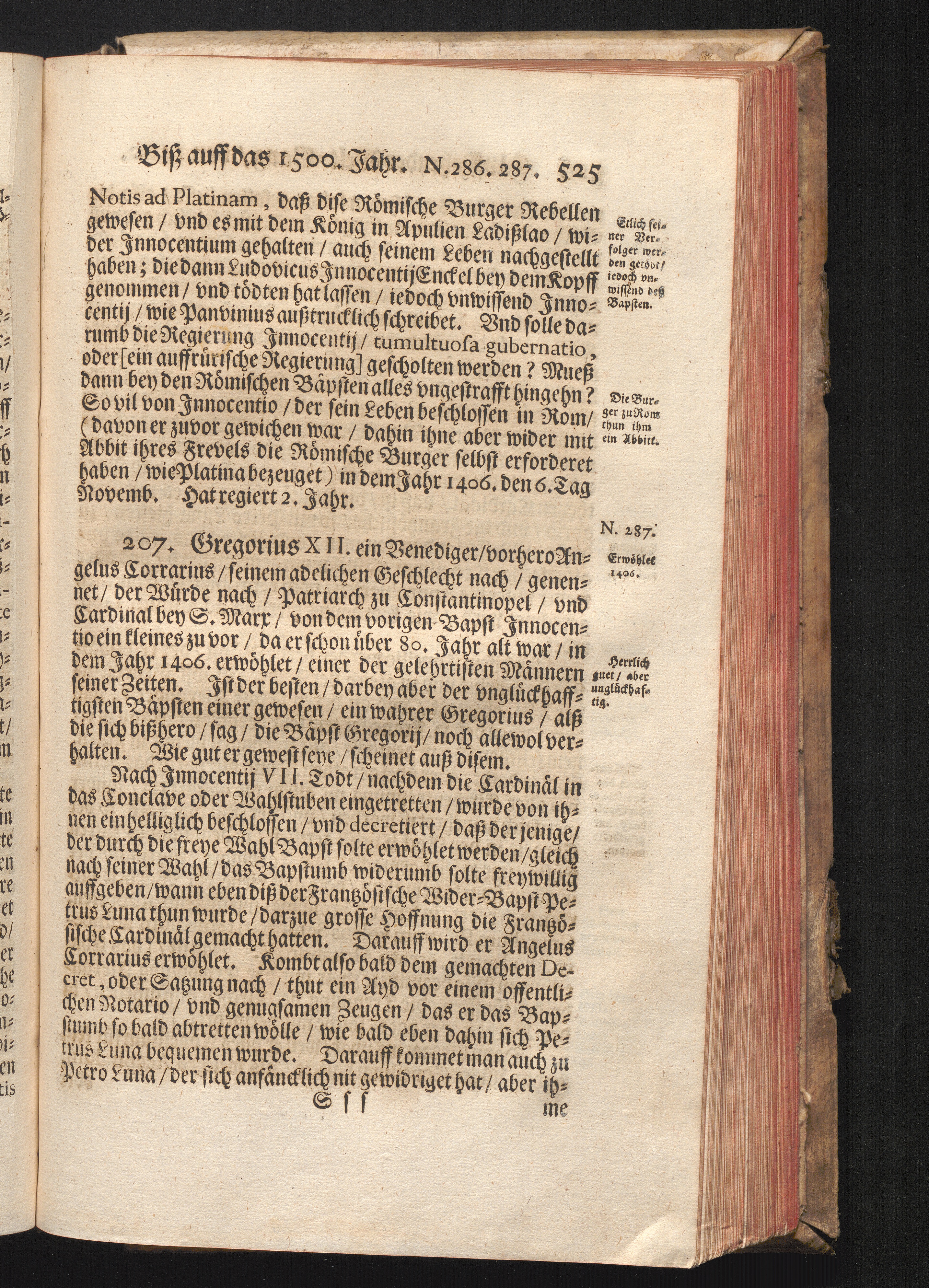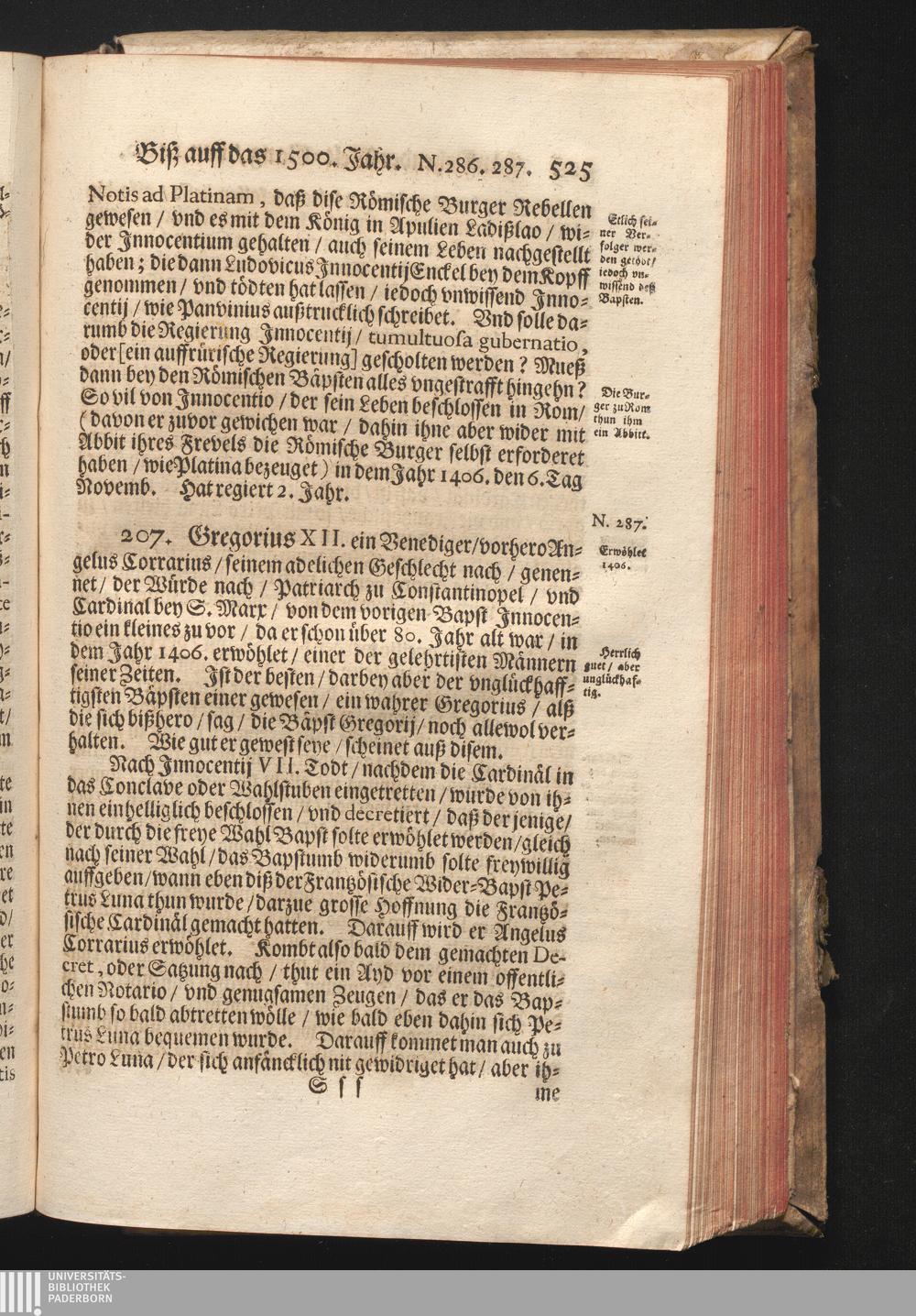Roma Gloriosa, oder Das Glorwürdige Rom In seinen Zweyhundert Drey vnd Viertzig Bäpsten. Daß ist/ Römische Bäpst/ angefangen von S. Peter Biß auff den heutiges Tags glorwürdig regierenden vnseren Allerheiligsten Vatter Clemens Den Zehenden : Deren aller hart angefochtene Ehr vnd Ruhm/ neben erzehlung ihrer glorwürdigen Thaten/ in disem Tractat verfochten wird/ wider die grausame/ durchauß vngegründte vilfältige Schmach-Reden ihrer Feinden/ die auß disen wahrhafften Statthaltern Christi/ lauter Antichristen/ Zwar vergebens/ gantz lächerlich/ vnd vngeschickt wöllen machen ... / In Druck gegeben von Christophoro Ott Auß der Gesellschafft Jesu Priestern