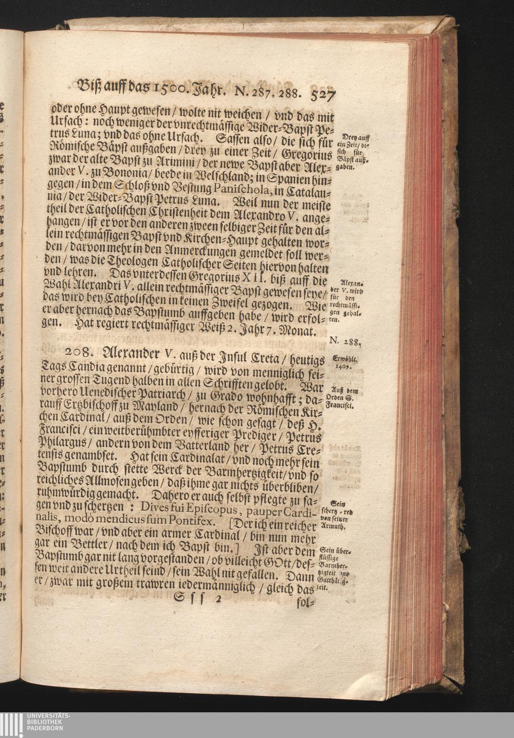 Roma Gloriosa, oder Das Glorwürdige Rom In seinen Zweyhundert Drey vnd Viertzig Bäpsten. Daß ist/ Römische Bäpst/ angefangen von S. Peter Biß auff den heutiges Tags glorwürdig regierenden vnseren Allerheiligsten Vatter Clemens Den Zehenden : Deren aller hart angefochtene Ehr vnd Ruhm/ neben erzehlung ihrer glorwürdigen Thaten/ in disem Tractat verfochten wird/ wider die grausame/ durchauß vngegründte vilfältige Schmach-Reden ihrer Feinden/ die auß disen wahrhafften Statthaltern Christi/ lauter Antichristen/ Zwar vergebens/ gantz lächerlich/ vnd vngeschickt wöllen machen ... / In Druck gegeben von Christophoro Ott Auß der Gesellschafft Jesu Priestern