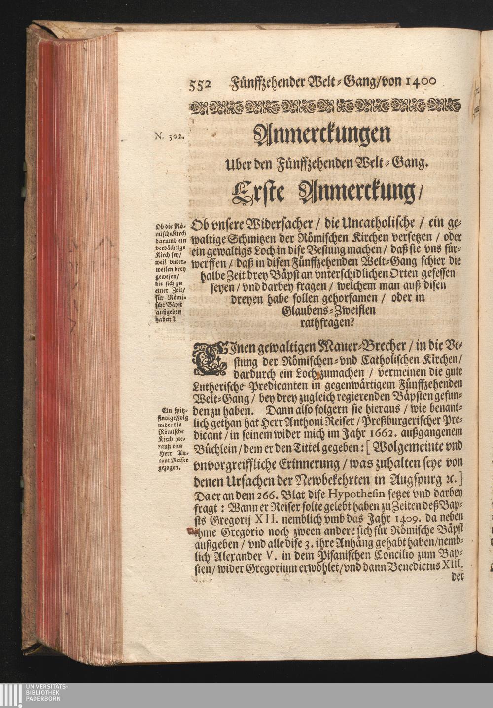 Roma Gloriosa, oder Das Glorwürdige Rom In seinen Zweyhundert Drey vnd Viertzig Bäpsten. Daß ist/ Römische Bäpst/ angefangen von S. Peter Biß auff den heutiges Tags glorwürdig regierenden vnseren Allerheiligsten Vatter Clemens Den Zehenden : Deren aller hart angefochtene Ehr vnd Ruhm/ neben erzehlung ihrer glorwürdigen Thaten/ in disem Tractat verfochten wird/ wider die grausame/ durchauß vngegründte vilfältige Schmach-Reden ihrer Feinden/ die auß disen wahrhafften Statthaltern Christi/ lauter Antichristen/ Zwar vergebens/ gantz lächerlich/ vnd vngeschickt wöllen machen ... / In Druck gegeben von Christophoro Ott Auß der Gesellschafft Jesu Priestern