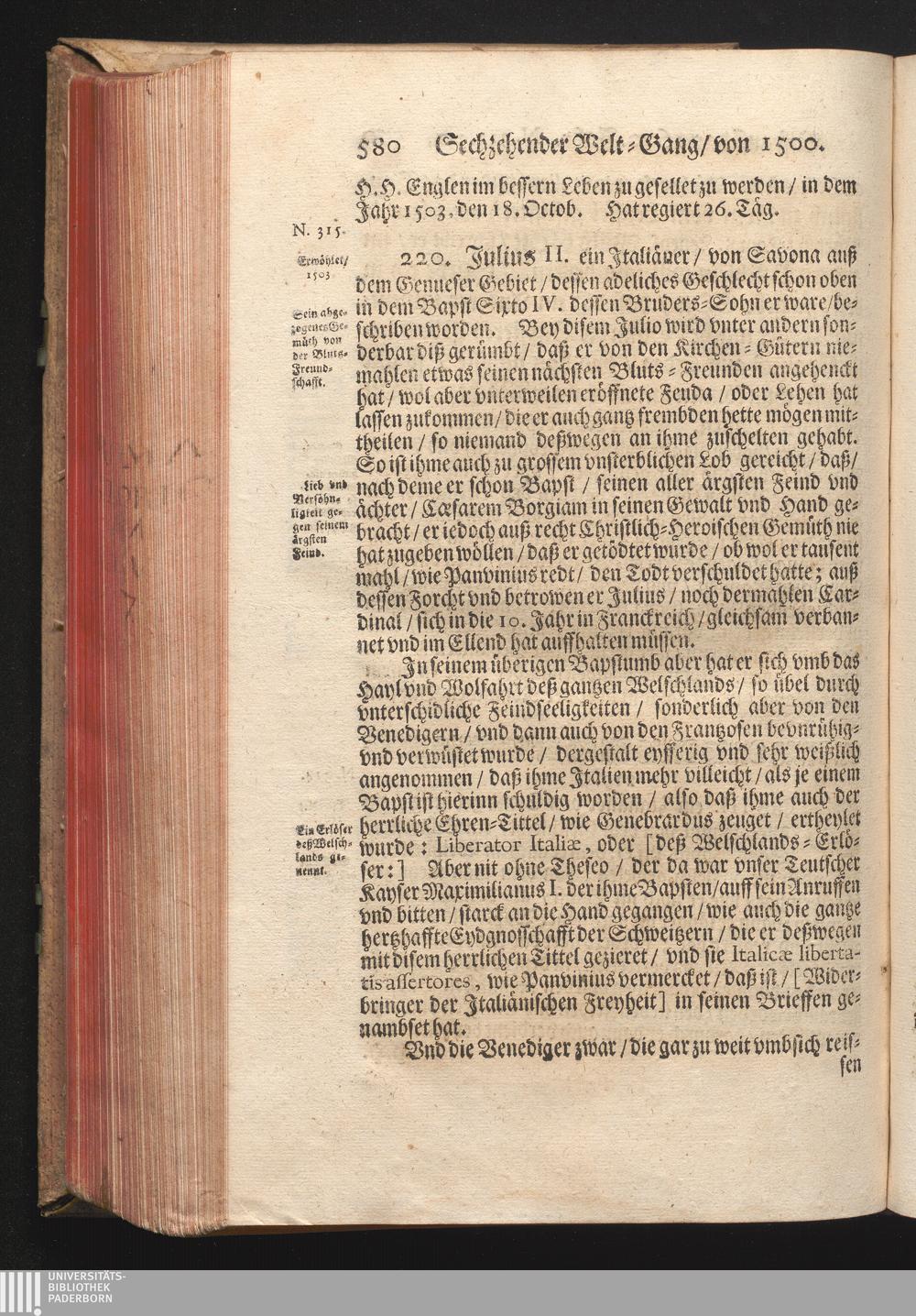 Roma Gloriosa, oder Das Glorwürdige Rom In seinen Zweyhundert Drey vnd Viertzig Bäpsten. Daß ist/ Römische Bäpst/ angefangen von S. Peter Biß auff den heutiges Tags glorwürdig regierenden vnseren Allerheiligsten Vatter Clemens Den Zehenden : Deren aller hart angefochtene Ehr vnd Ruhm/ neben erzehlung ihrer glorwürdigen Thaten/ in disem Tractat verfochten wird/ wider die grausame/ durchauß vngegründte vilfältige Schmach-Reden ihrer Feinden/ die auß disen wahrhafften Statthaltern Christi/ lauter Antichristen/ Zwar vergebens/ gantz lächerlich/ vnd vngeschickt wöllen machen ... / In Druck gegeben von Christophoro Ott Auß der Gesellschafft Jesu Priestern