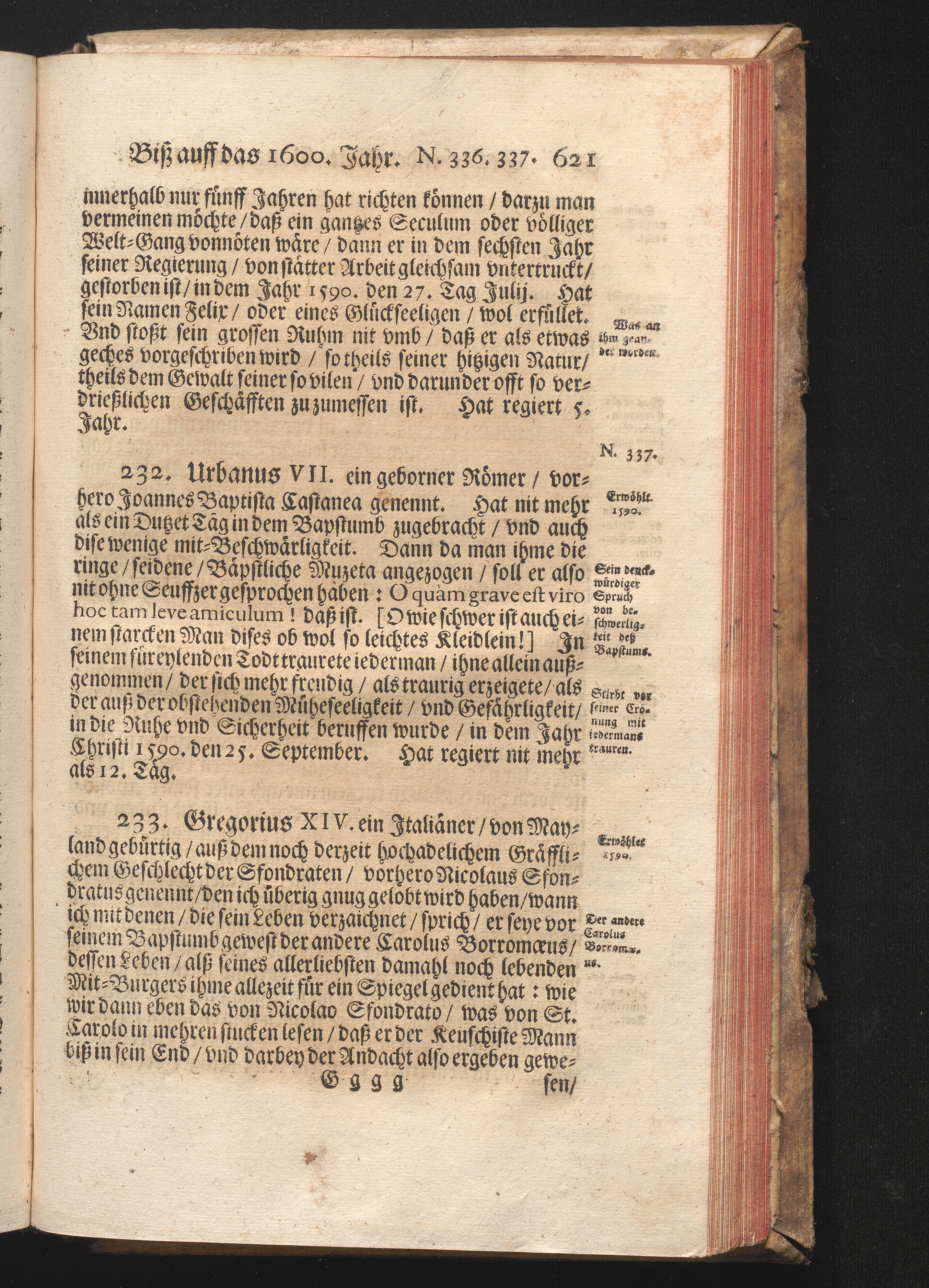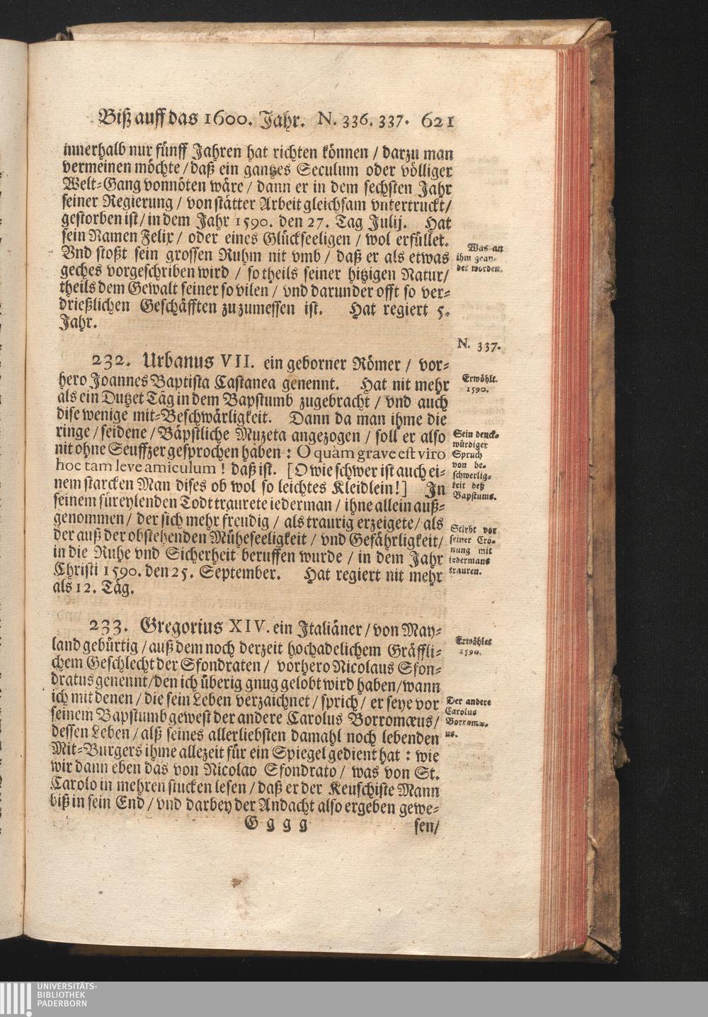 Roma Gloriosa, oder Das Glorwürdige Rom In seinen Zweyhundert Drey vnd Viertzig Bäpsten. Daß ist/ Römische Bäpst/ angefangen von S. Peter Biß auff den heutiges Tags glorwürdig regierenden vnseren Allerheiligsten Vatter Clemens Den Zehenden : Deren aller hart angefochtene Ehr vnd Ruhm/ neben erzehlung ihrer glorwürdigen Thaten/ in disem Tractat verfochten wird/ wider die grausame/ durchauß vngegründte vilfältige Schmach-Reden ihrer Feinden/ die auß disen wahrhafften Statthaltern Christi/ lauter Antichristen/ Zwar vergebens/ gantz lächerlich/ vnd vngeschickt wöllen machen ... / In Druck gegeben von Christophoro Ott Auß der Gesellschafft Jesu Priestern