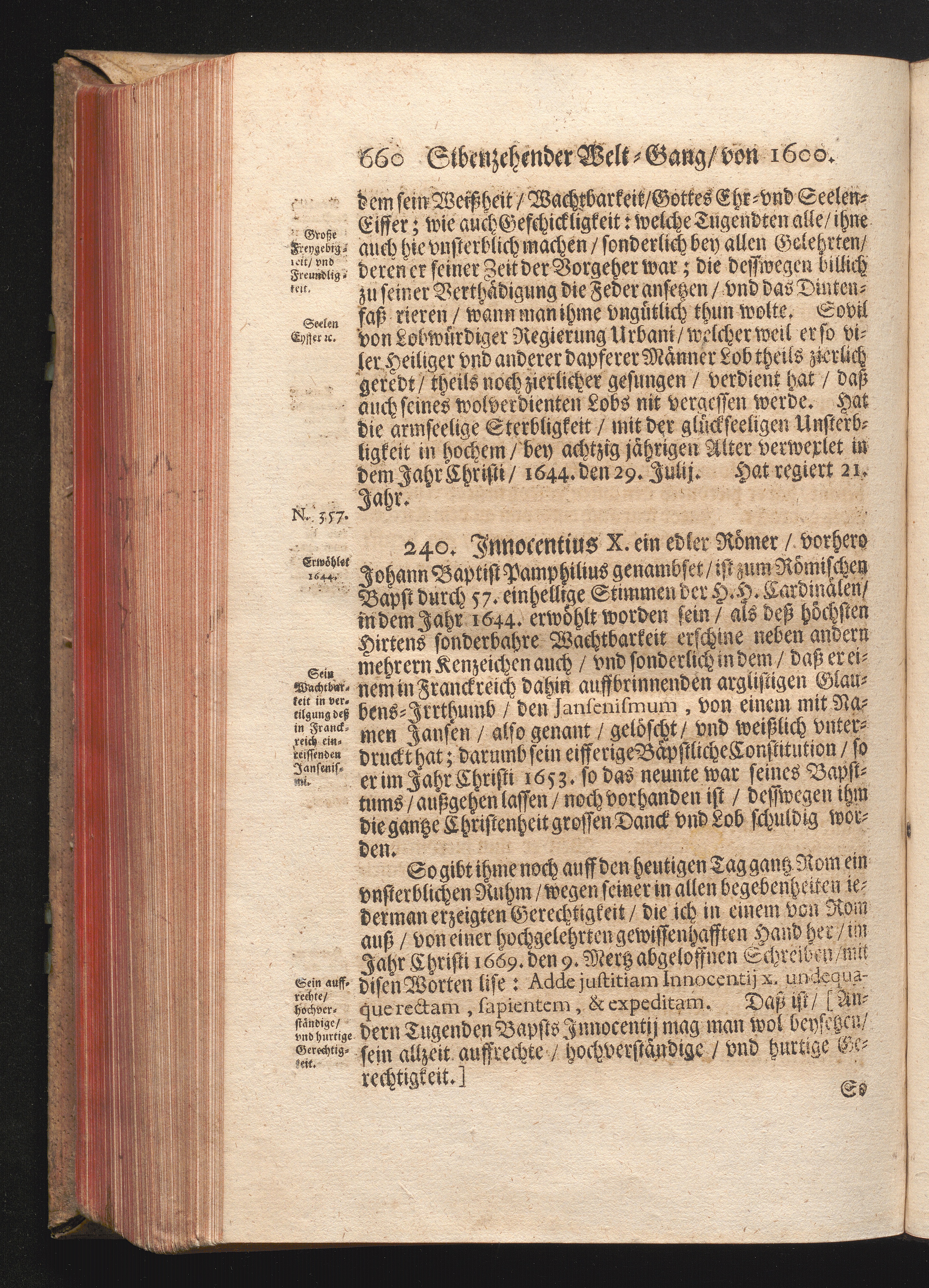 Roma Gloriosa, oder Das Glorwürdige Rom In seinen Zweyhundert Drey vnd Viertzig Bäpsten. Daß ist/ Römische Bäpst/ angefangen von S. Peter Biß auff den heutiges Tags glorwürdig regierenden vnseren Allerheiligsten Vatter Clemens Den Zehenden : Deren aller hart angefochtene Ehr vnd Ruhm/ neben erzehlung ihrer glorwürdigen Thaten/ in disem Tractat verfochten wird/ wider die grausame/ durchauß vngegründte vilfältige Schmach-Reden ihrer Feinden/ die auß disen wahrhafften Statthaltern Christi/ lauter Antichristen/ Zwar vergebens/ gantz lächerlich/ vnd vngeschickt wöllen machen ... / In Druck gegeben von Christophoro Ott Auß der Gesellschafft Jesu Priestern