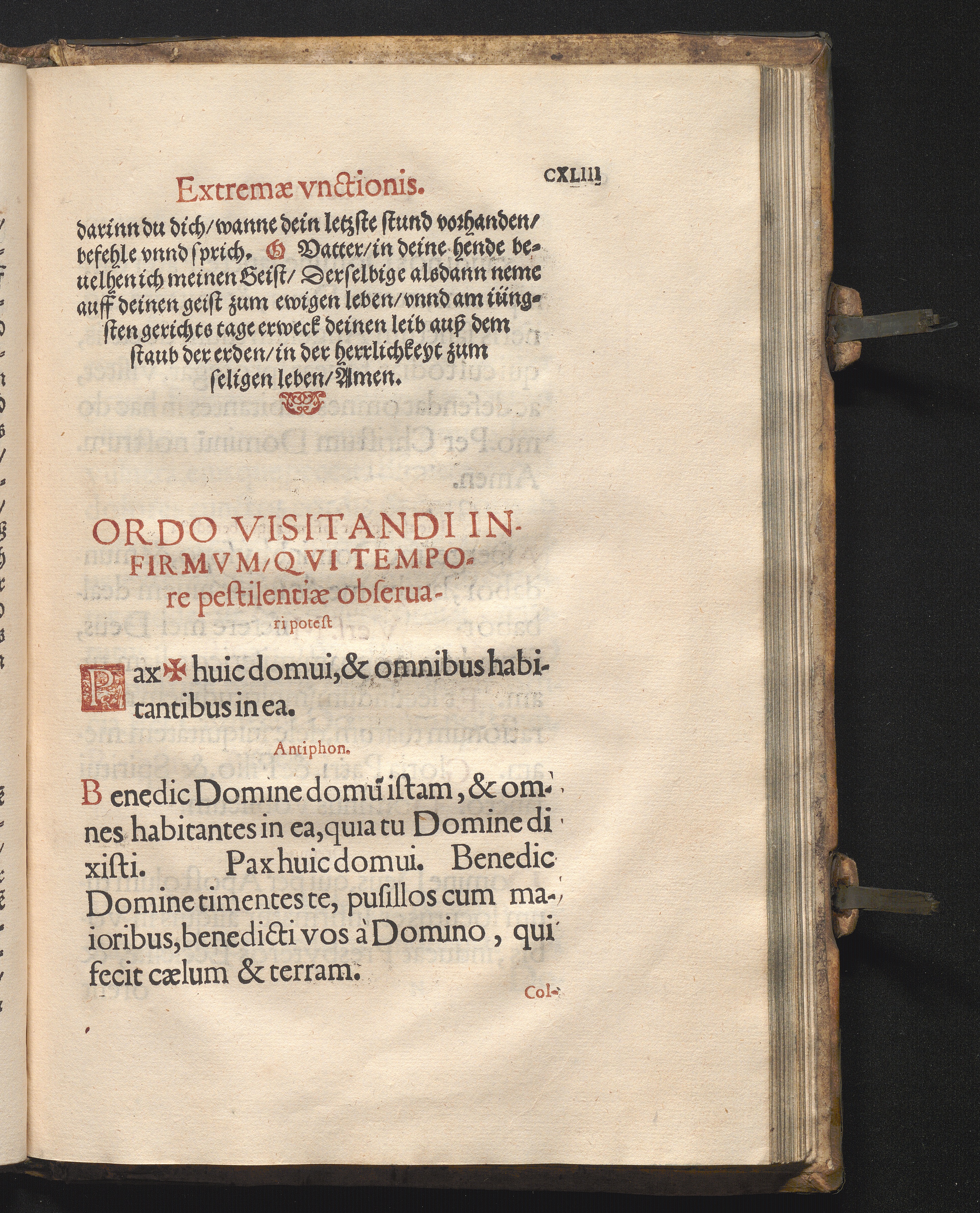 Libri// Officialis// Sive Agendae S.// Ecclesiae Treverensis Pars// Prior : De Legitima, Catholica, Ac Solemni Sacramentorum administratione, cum breui & perspi-//cua cuiusque explicatione, Pastoribus imprimis non// solùm vtili, sed & necessaria. Quibus adiuncta// sunt & alia, vt Index sequens// demonstrabit.// / Per Reverendis-//simvm In Christo Patrem Ac// Dominvm, D. Iacobvm Archiepisco-//pum Treuerensem, Sacri Romani Imperij per Galliam,// & Regnum Arelatense Archicancellarium,// Principem Electorem, &c. in gratiam// Pastorum euulgata.//