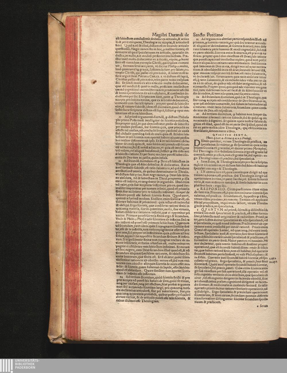 DN. DVRANDI|| à Sancto Portiano, in Senten=||tias Theologicas Petri Lombardi|| Commentariorum libri|| quatuor.|| / Primùm quidem per Nicolaum à Martimbos, eximium Nauarrensis|| Collegij Theologum, nunc verò denuo per alios quosdam|| non inferioris notæ Doctores quanta fieri po-||tuit cura diligentiáque emendati.|| Vná cum Auctoris Vita, & copiosissimo|| decisionum omnium|| Indice.||