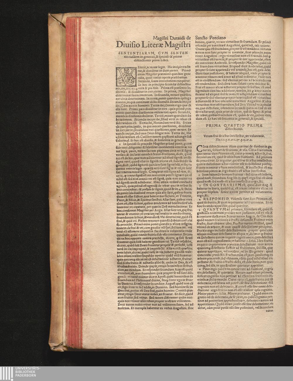 DN. DVRANDI|| à Sancto Portiano, in Senten=||tias Theologicas Petri Lombardi|| Commentariorum libri|| quatuor.|| / Primùm quidem per Nicolaum à Martimbos, eximium Nauarrensis|| Collegij Theologum, nunc verò denuo per alios quosdam|| non inferioris notæ Doctores quanta fieri po-||tuit cura diligentiáque emendati.|| Vná cum Auctoris Vita, & copiosissimo|| decisionum omnium|| Indice.||