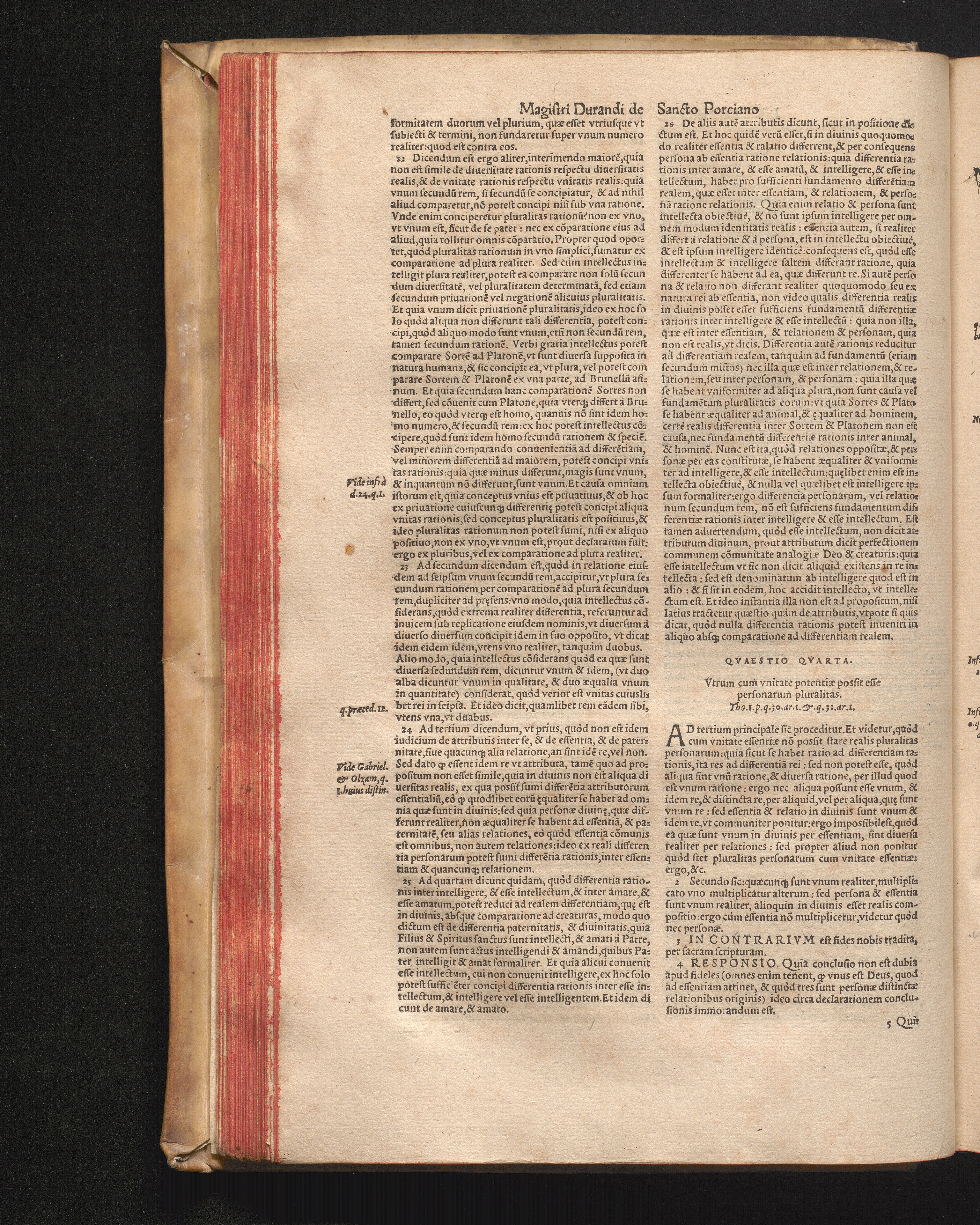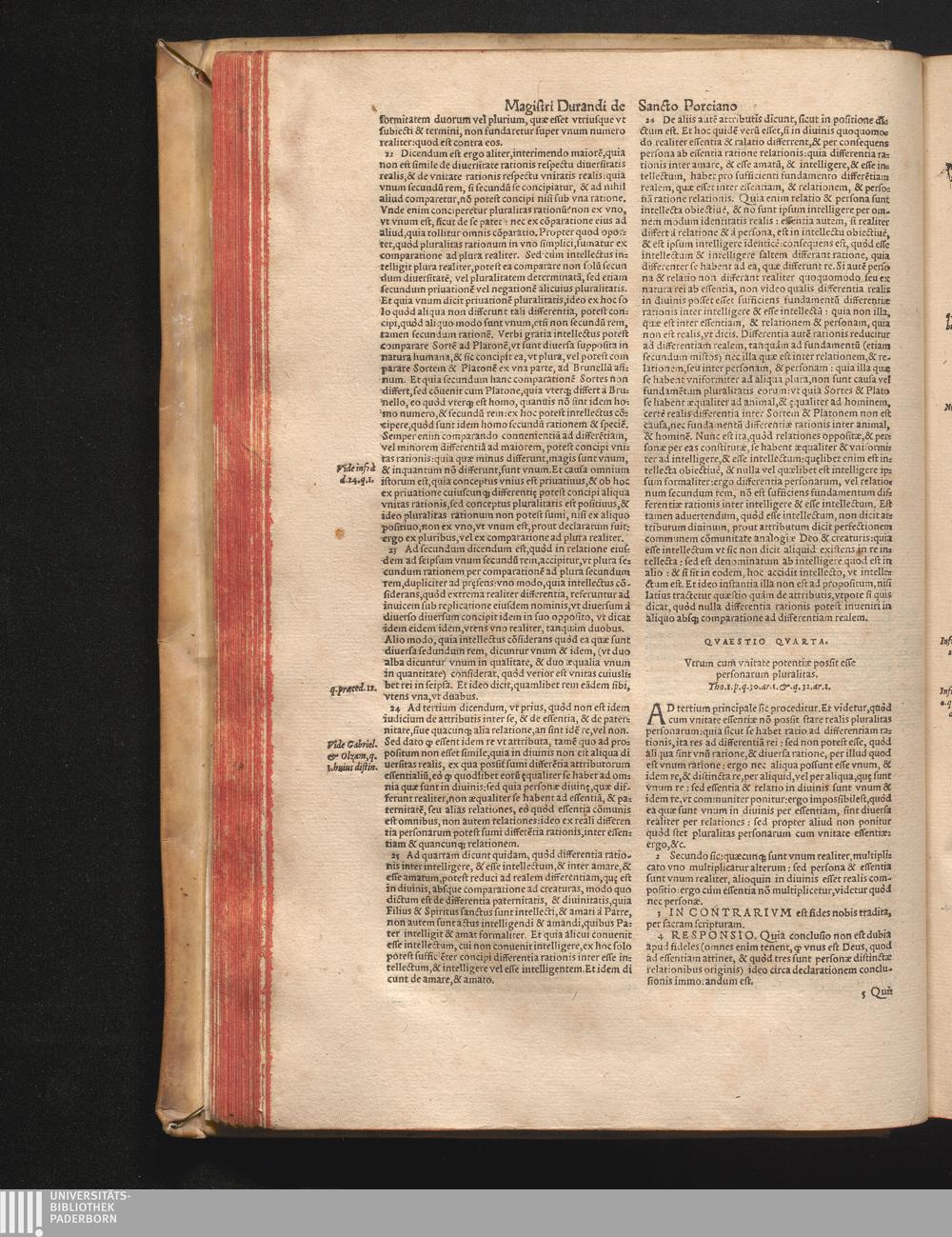 DN. DVRANDI|| à Sancto Portiano, in Senten=||tias Theologicas Petri Lombardi|| Commentariorum libri|| quatuor.|| / Primùm quidem per Nicolaum à Martimbos, eximium Nauarrensis|| Collegij Theologum, nunc verò denuo per alios quosdam|| non inferioris notæ Doctores quanta fieri po-||tuit cura diligentiáque emendati.|| Vná cum Auctoris Vita, & copiosissimo|| decisionum omnium|| Indice.||