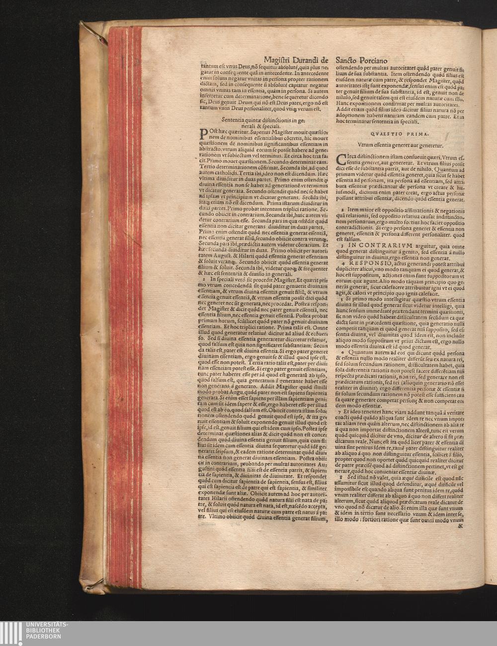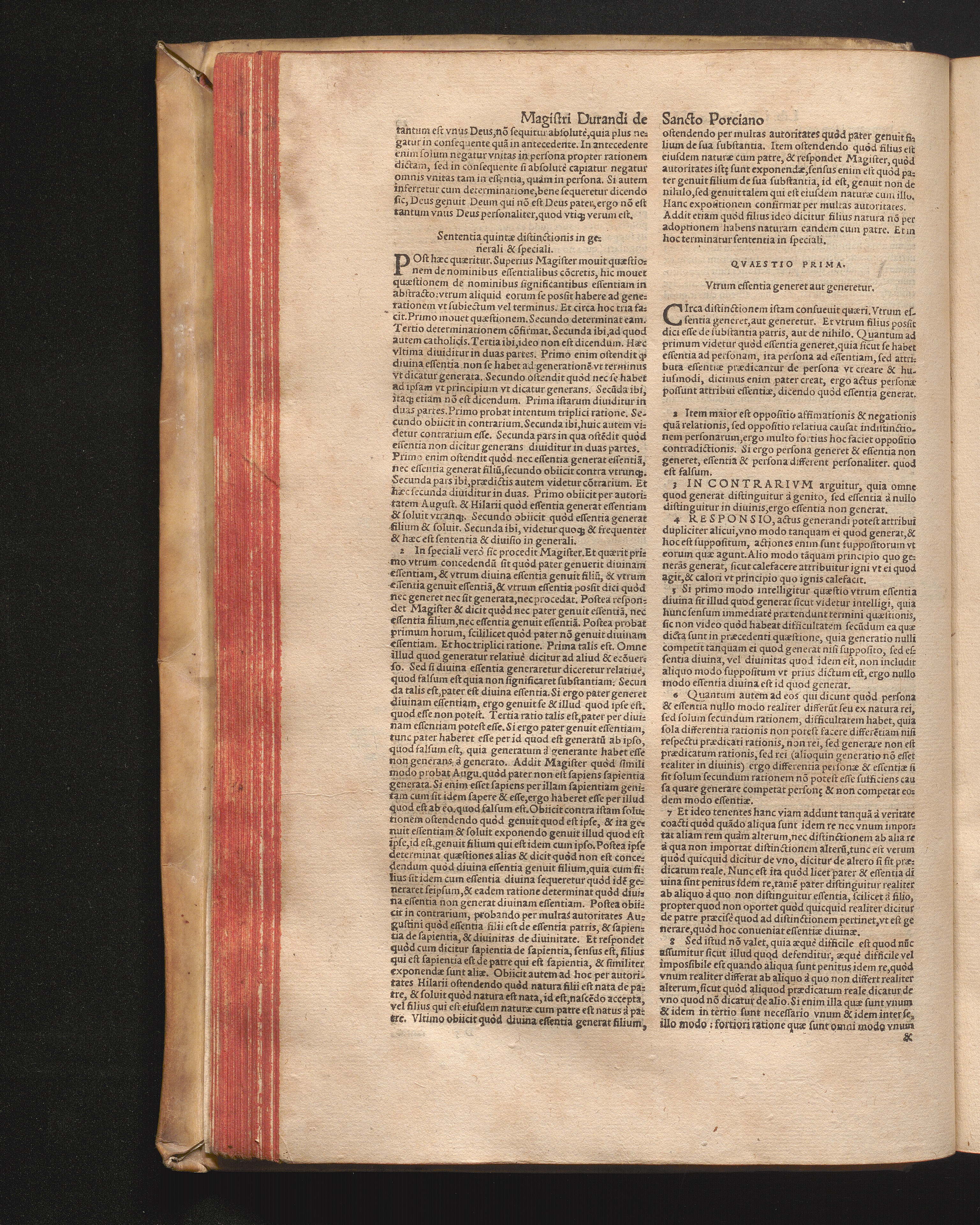 DN. DVRANDI|| à Sancto Portiano, in Senten=||tias Theologicas Petri Lombardi|| Commentariorum libri|| quatuor.|| / Primùm quidem per Nicolaum à Martimbos, eximium Nauarrensis|| Collegij Theologum, nunc verò denuo per alios quosdam|| non inferioris notæ Doctores quanta fieri po-||tuit cura diligentiáque emendati.|| Vná cum Auctoris Vita, & copiosissimo|| decisionum omnium|| Indice.||