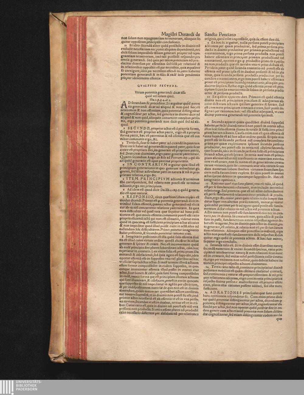DN. DVRANDI|| à Sancto Portiano, in Senten=||tias Theologicas Petri Lombardi|| Commentariorum libri|| quatuor.|| / Primùm quidem per Nicolaum à Martimbos, eximium Nauarrensis|| Collegij Theologum, nunc verò denuo per alios quosdam|| non inferioris notæ Doctores quanta fieri po-||tuit cura diligentiáque emendati.|| Vná cum Auctoris Vita, & copiosissimo|| decisionum omnium|| Indice.||