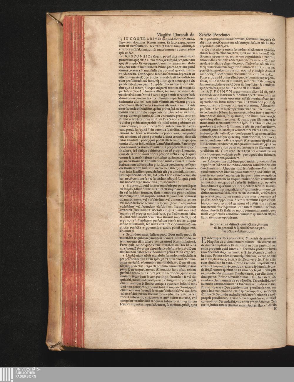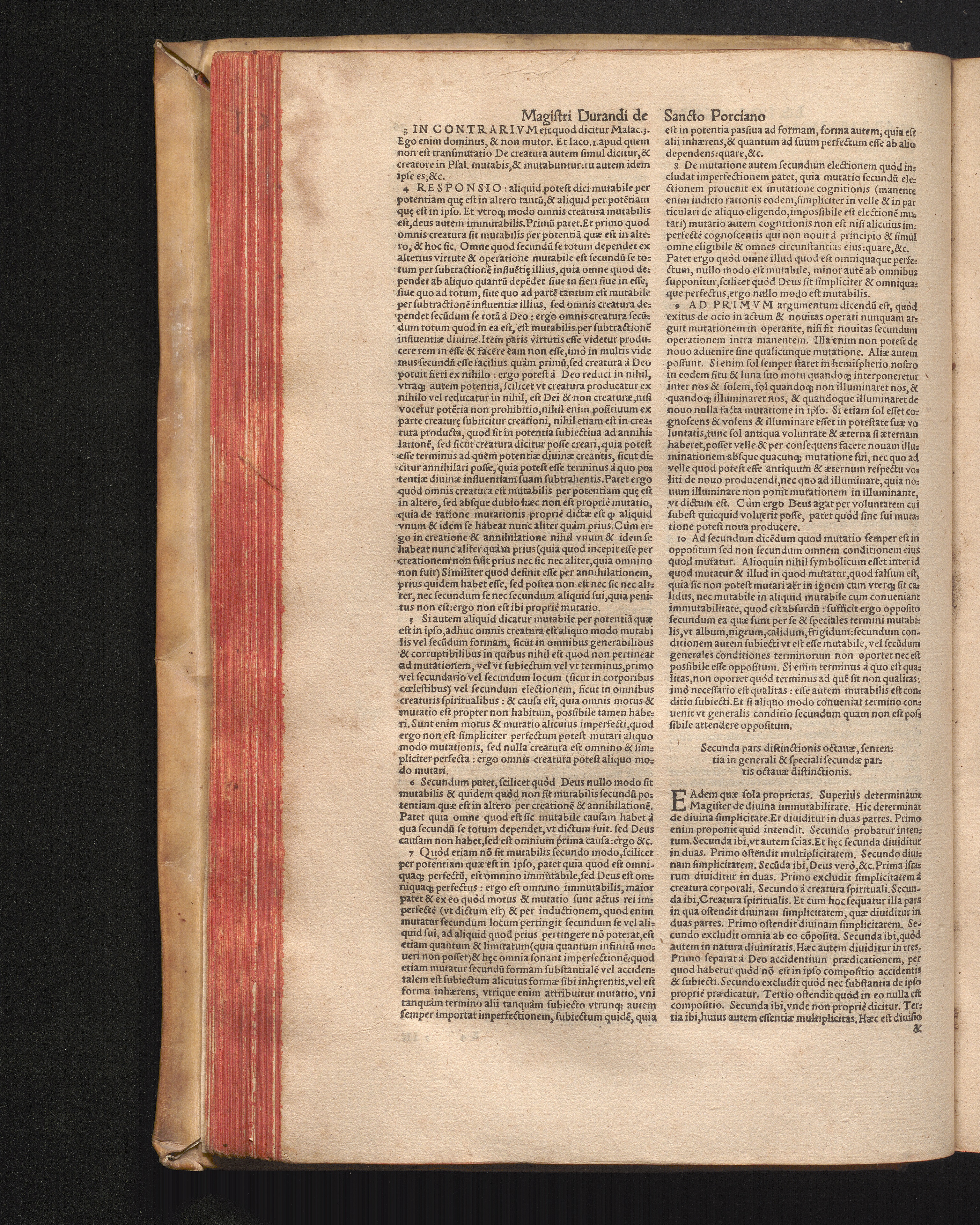 DN. DVRANDI|| à Sancto Portiano, in Senten=||tias Theologicas Petri Lombardi|| Commentariorum libri|| quatuor.|| / Primùm quidem per Nicolaum à Martimbos, eximium Nauarrensis|| Collegij Theologum, nunc verò denuo per alios quosdam|| non inferioris notæ Doctores quanta fieri po-||tuit cura diligentiáque emendati.|| Vná cum Auctoris Vita, & copiosissimo|| decisionum omnium|| Indice.||