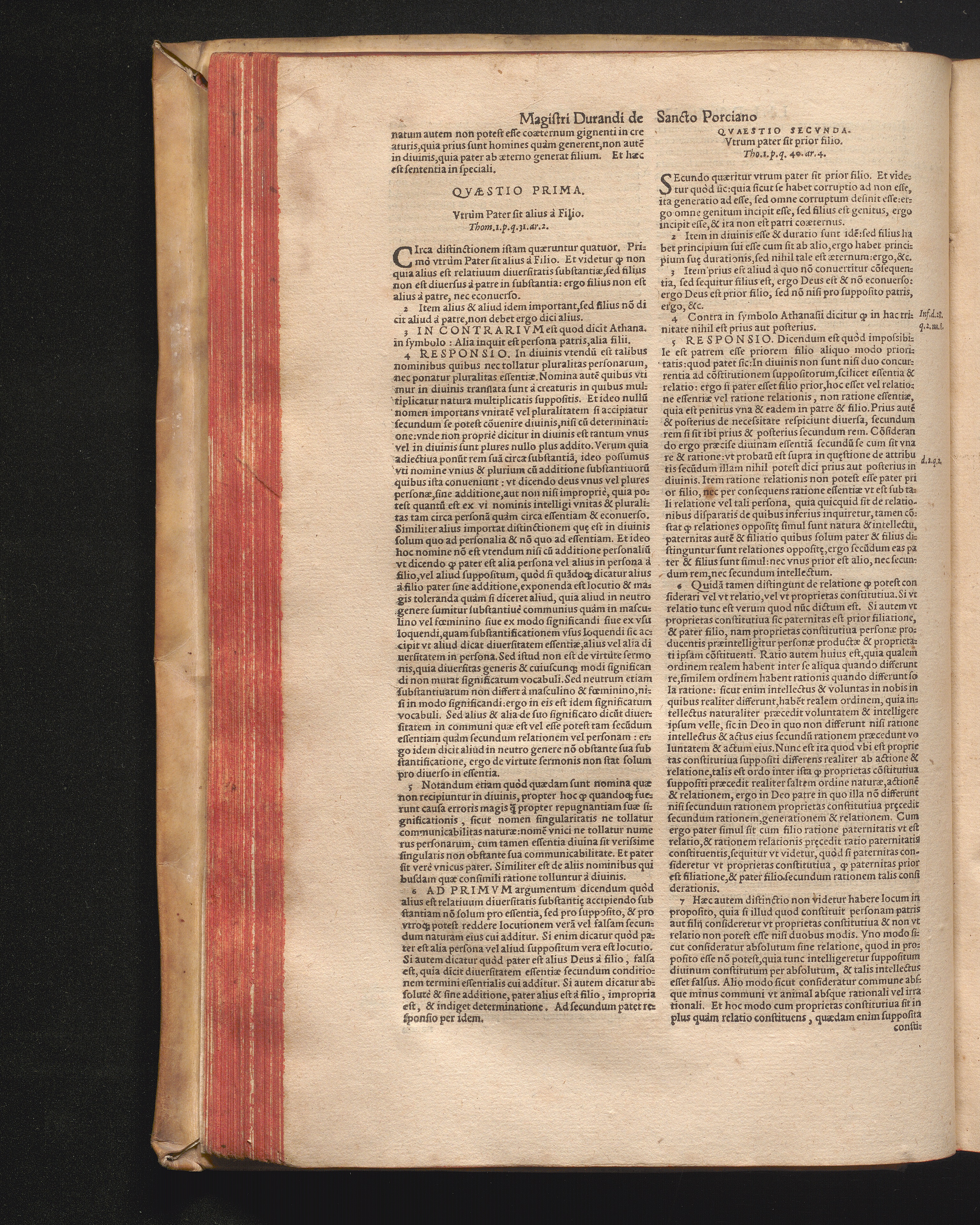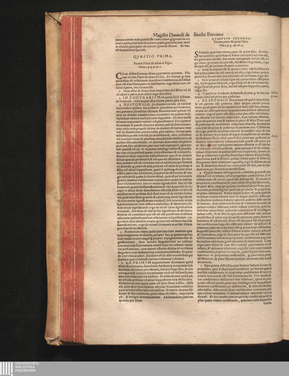 DN. DVRANDI|| à Sancto Portiano, in Senten=||tias Theologicas Petri Lombardi|| Commentariorum libri|| quatuor.|| / Primùm quidem per Nicolaum à Martimbos, eximium Nauarrensis|| Collegij Theologum, nunc verò denuo per alios quosdam|| non inferioris notæ Doctores quanta fieri po-||tuit cura diligentiáque emendati.|| Vná cum Auctoris Vita, & copiosissimo|| decisionum omnium|| Indice.||
