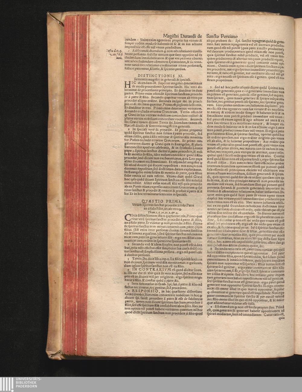 DN. DVRANDI|| à Sancto Portiano, in Senten=||tias Theologicas Petri Lombardi|| Commentariorum libri|| quatuor.|| / Primùm quidem per Nicolaum à Martimbos, eximium Nauarrensis|| Collegij Theologum, nunc verò denuo per alios quosdam|| non inferioris notæ Doctores quanta fieri po-||tuit cura diligentiáque emendati.|| Vná cum Auctoris Vita, & copiosissimo|| decisionum omnium|| Indice.||