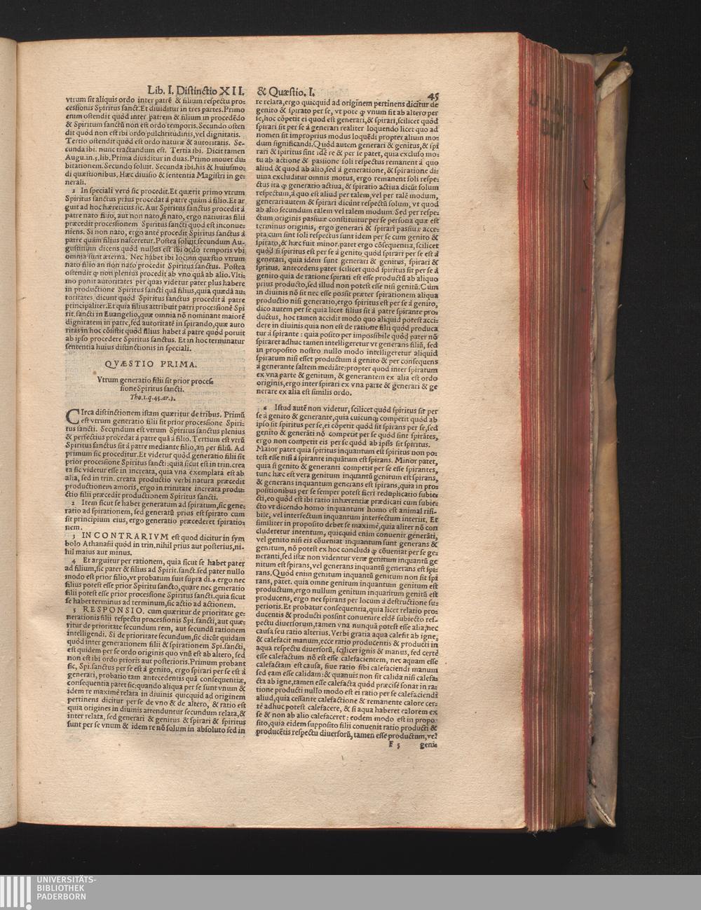 DN. DVRANDI|| à Sancto Portiano, in Senten=||tias Theologicas Petri Lombardi|| Commentariorum libri|| quatuor.|| / Primùm quidem per Nicolaum à Martimbos, eximium Nauarrensis|| Collegij Theologum, nunc verò denuo per alios quosdam|| non inferioris notæ Doctores quanta fieri po-||tuit cura diligentiáque emendati.|| Vná cum Auctoris Vita, & copiosissimo|| decisionum omnium|| Indice.||