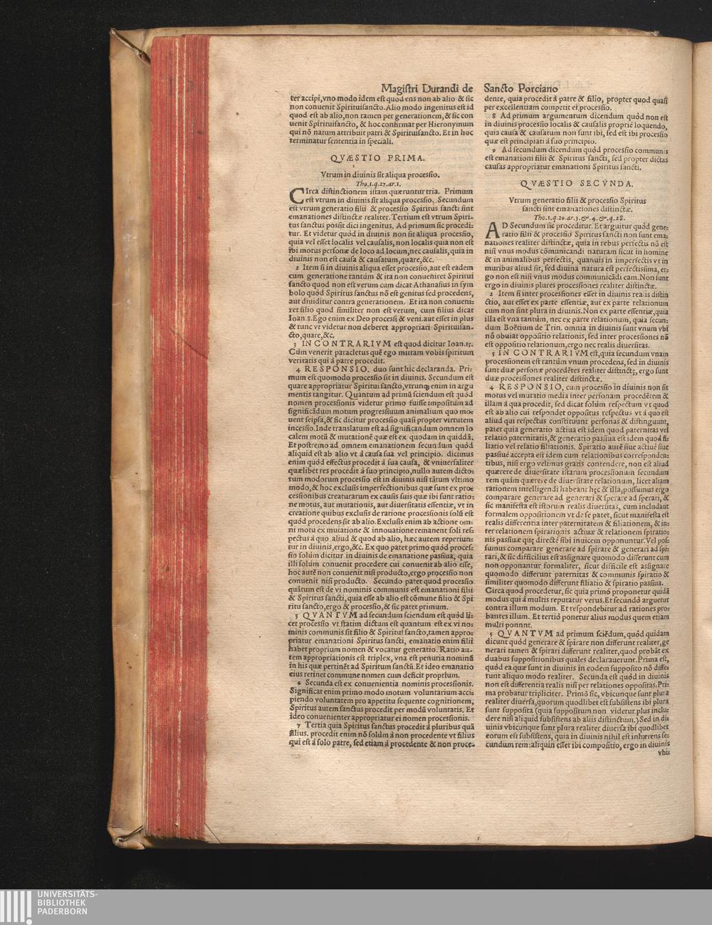 DN. DVRANDI|| à Sancto Portiano, in Senten=||tias Theologicas Petri Lombardi|| Commentariorum libri|| quatuor.|| / Primùm quidem per Nicolaum à Martimbos, eximium Nauarrensis|| Collegij Theologum, nunc verò denuo per alios quosdam|| non inferioris notæ Doctores quanta fieri po-||tuit cura diligentiáque emendati.|| Vná cum Auctoris Vita, & copiosissimo|| decisionum omnium|| Indice.||