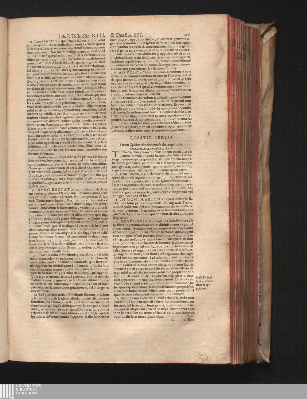 DN. DVRANDI|| à Sancto Portiano, in Senten=||tias Theologicas Petri Lombardi|| Commentariorum libri|| quatuor.|| / Primùm quidem per Nicolaum à Martimbos, eximium Nauarrensis|| Collegij Theologum, nunc verò denuo per alios quosdam|| non inferioris notæ Doctores quanta fieri po-||tuit cura diligentiáque emendati.|| Vná cum Auctoris Vita, & copiosissimo|| decisionum omnium|| Indice.||