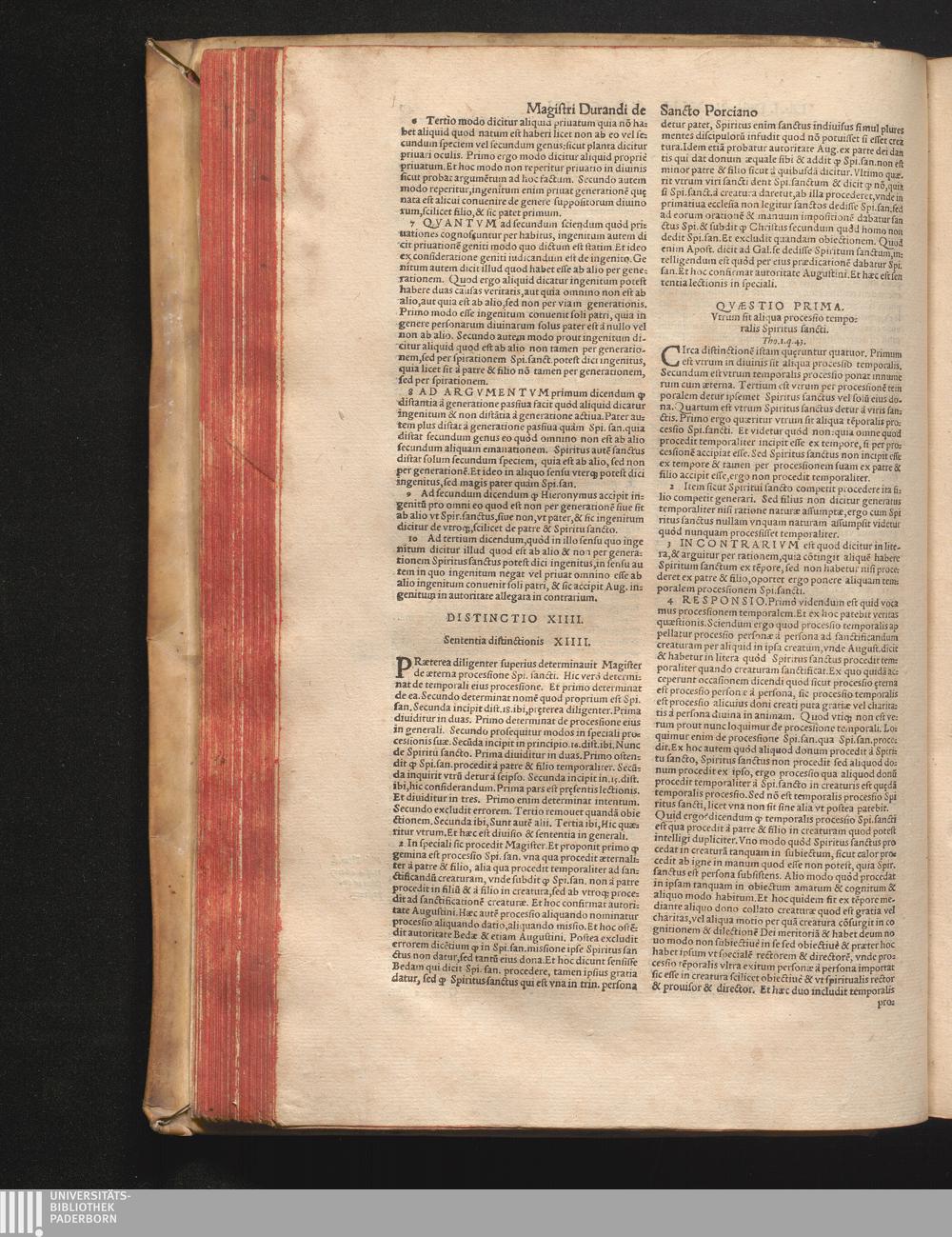 DN. DVRANDI|| à Sancto Portiano, in Senten=||tias Theologicas Petri Lombardi|| Commentariorum libri|| quatuor.|| / Primùm quidem per Nicolaum à Martimbos, eximium Nauarrensis|| Collegij Theologum, nunc verò denuo per alios quosdam|| non inferioris notæ Doctores quanta fieri po-||tuit cura diligentiáque emendati.|| Vná cum Auctoris Vita, & copiosissimo|| decisionum omnium|| Indice.||