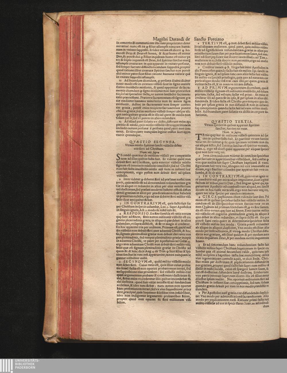 DN. DVRANDI|| à Sancto Portiano, in Senten=||tias Theologicas Petri Lombardi|| Commentariorum libri|| quatuor.|| / Primùm quidem per Nicolaum à Martimbos, eximium Nauarrensis|| Collegij Theologum, nunc verò denuo per alios quosdam|| non inferioris notæ Doctores quanta fieri po-||tuit cura diligentiáque emendati.|| Vná cum Auctoris Vita, & copiosissimo|| decisionum omnium|| Indice.||