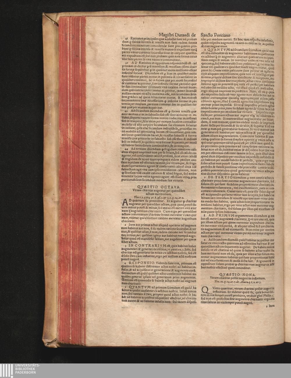 DN. DVRANDI|| à Sancto Portiano, in Senten=||tias Theologicas Petri Lombardi|| Commentariorum libri|| quatuor.|| / Primùm quidem per Nicolaum à Martimbos, eximium Nauarrensis|| Collegij Theologum, nunc verò denuo per alios quosdam|| non inferioris notæ Doctores quanta fieri po-||tuit cura diligentiáque emendati.|| Vná cum Auctoris Vita, & copiosissimo|| decisionum omnium|| Indice.||