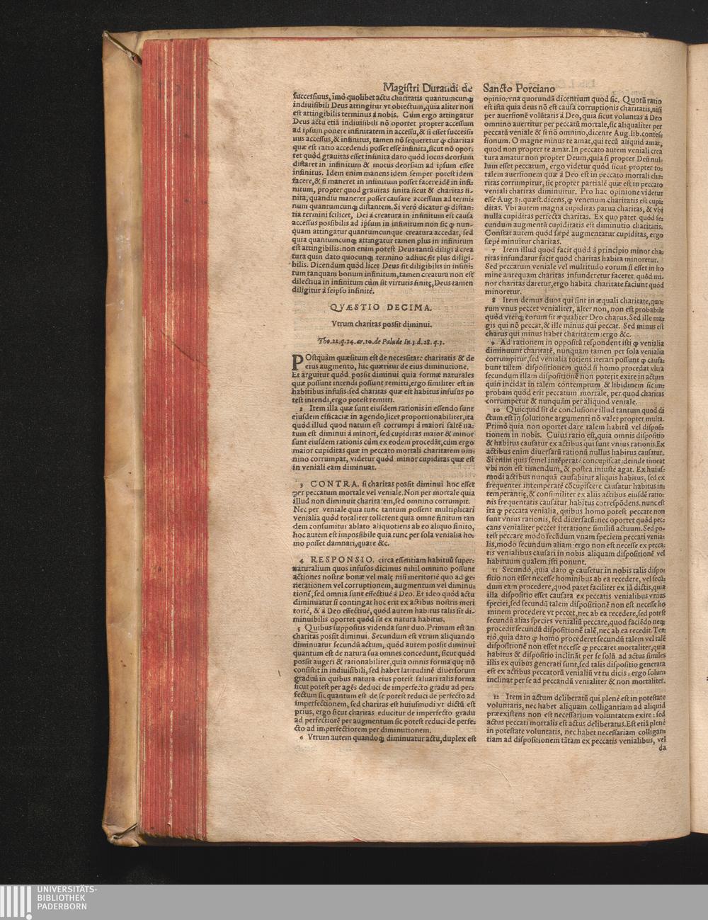 DN. DVRANDI|| à Sancto Portiano, in Senten=||tias Theologicas Petri Lombardi|| Commentariorum libri|| quatuor.|| / Primùm quidem per Nicolaum à Martimbos, eximium Nauarrensis|| Collegij Theologum, nunc verò denuo per alios quosdam|| non inferioris notæ Doctores quanta fieri po-||tuit cura diligentiáque emendati.|| Vná cum Auctoris Vita, & copiosissimo|| decisionum omnium|| Indice.||