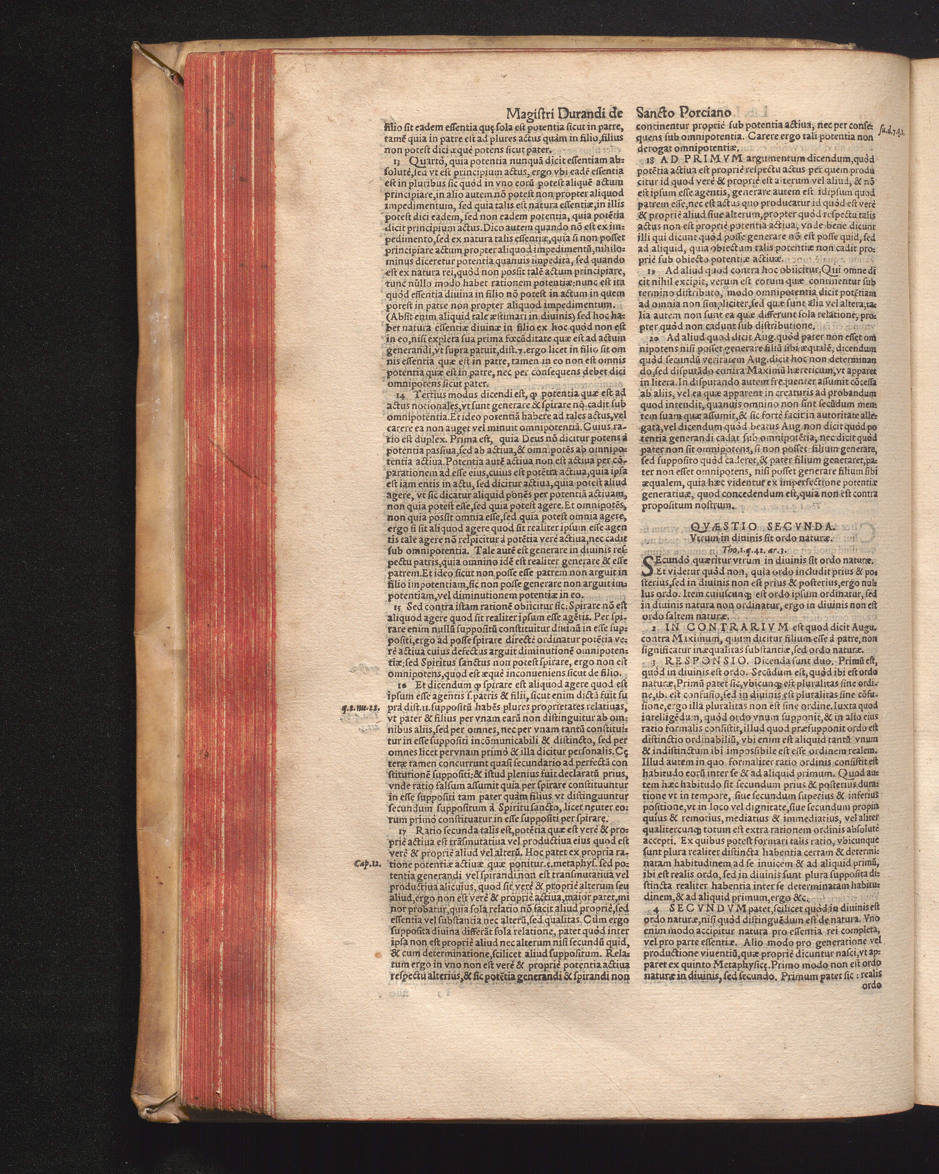 DN. DVRANDI|| à Sancto Portiano, in Senten=||tias Theologicas Petri Lombardi|| Commentariorum libri|| quatuor.|| / Primùm quidem per Nicolaum à Martimbos, eximium Nauarrensis|| Collegij Theologum, nunc verò denuo per alios quosdam|| non inferioris notæ Doctores quanta fieri po-||tuit cura diligentiáque emendati.|| Vná cum Auctoris Vita, & copiosissimo|| decisionum omnium|| Indice.||