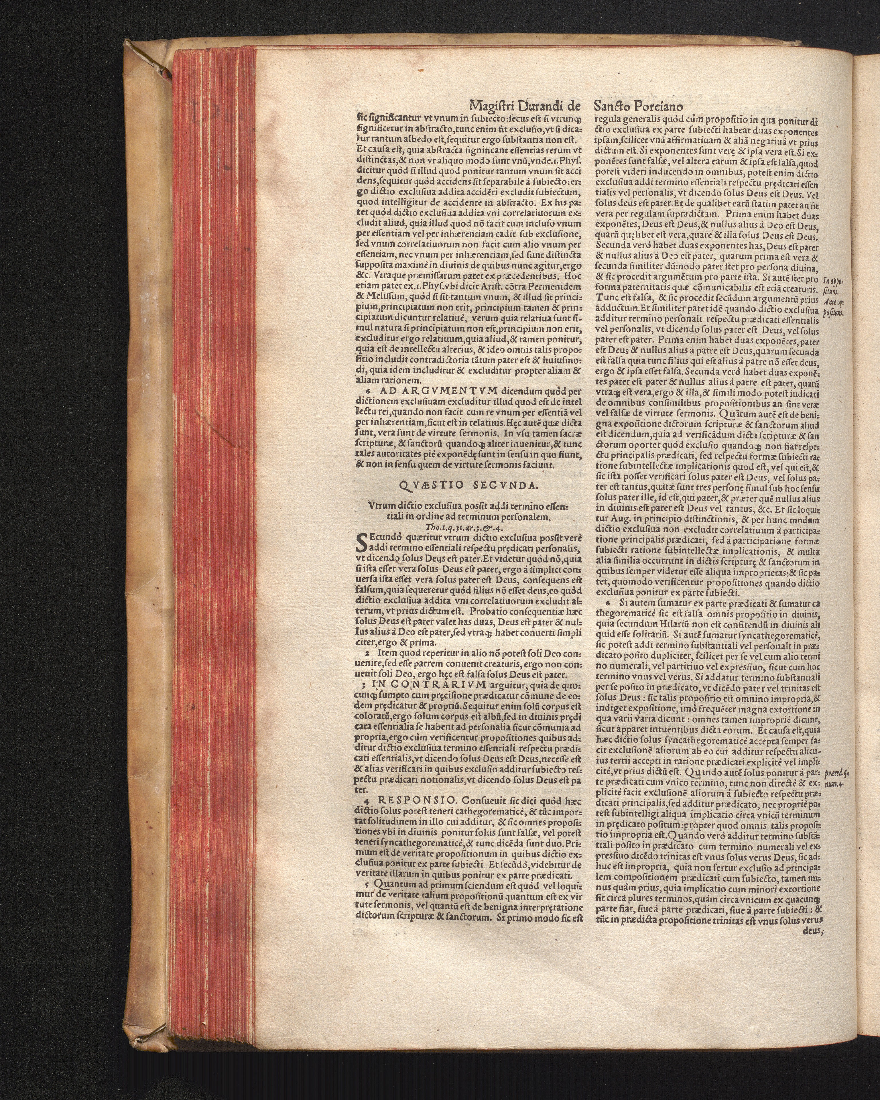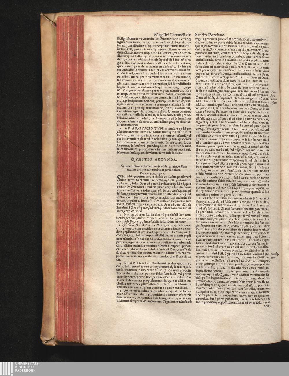 DN. DVRANDI|| à Sancto Portiano, in Senten=||tias Theologicas Petri Lombardi|| Commentariorum libri|| quatuor.|| / Primùm quidem per Nicolaum à Martimbos, eximium Nauarrensis|| Collegij Theologum, nunc verò denuo per alios quosdam|| non inferioris notæ Doctores quanta fieri po-||tuit cura diligentiáque emendati.|| Vná cum Auctoris Vita, & copiosissimo|| decisionum omnium|| Indice.||