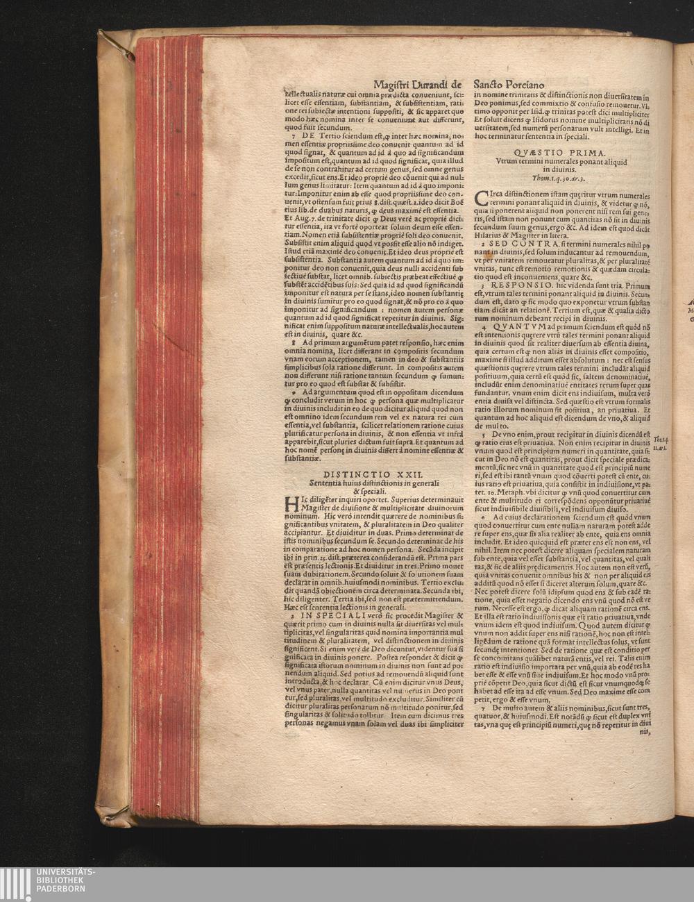 DN. DVRANDI|| à Sancto Portiano, in Senten=||tias Theologicas Petri Lombardi|| Commentariorum libri|| quatuor.|| / Primùm quidem per Nicolaum à Martimbos, eximium Nauarrensis|| Collegij Theologum, nunc verò denuo per alios quosdam|| non inferioris notæ Doctores quanta fieri po-||tuit cura diligentiáque emendati.|| Vná cum Auctoris Vita, & copiosissimo|| decisionum omnium|| Indice.||