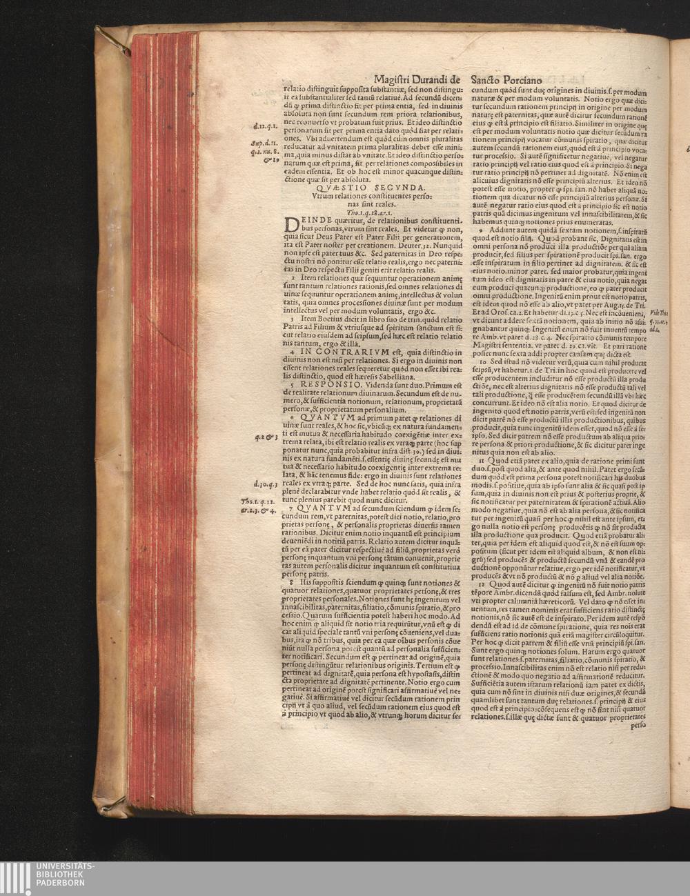 DN. DVRANDI|| à Sancto Portiano, in Senten=||tias Theologicas Petri Lombardi|| Commentariorum libri|| quatuor.|| / Primùm quidem per Nicolaum à Martimbos, eximium Nauarrensis|| Collegij Theologum, nunc verò denuo per alios quosdam|| non inferioris notæ Doctores quanta fieri po-||tuit cura diligentiáque emendati.|| Vná cum Auctoris Vita, & copiosissimo|| decisionum omnium|| Indice.||