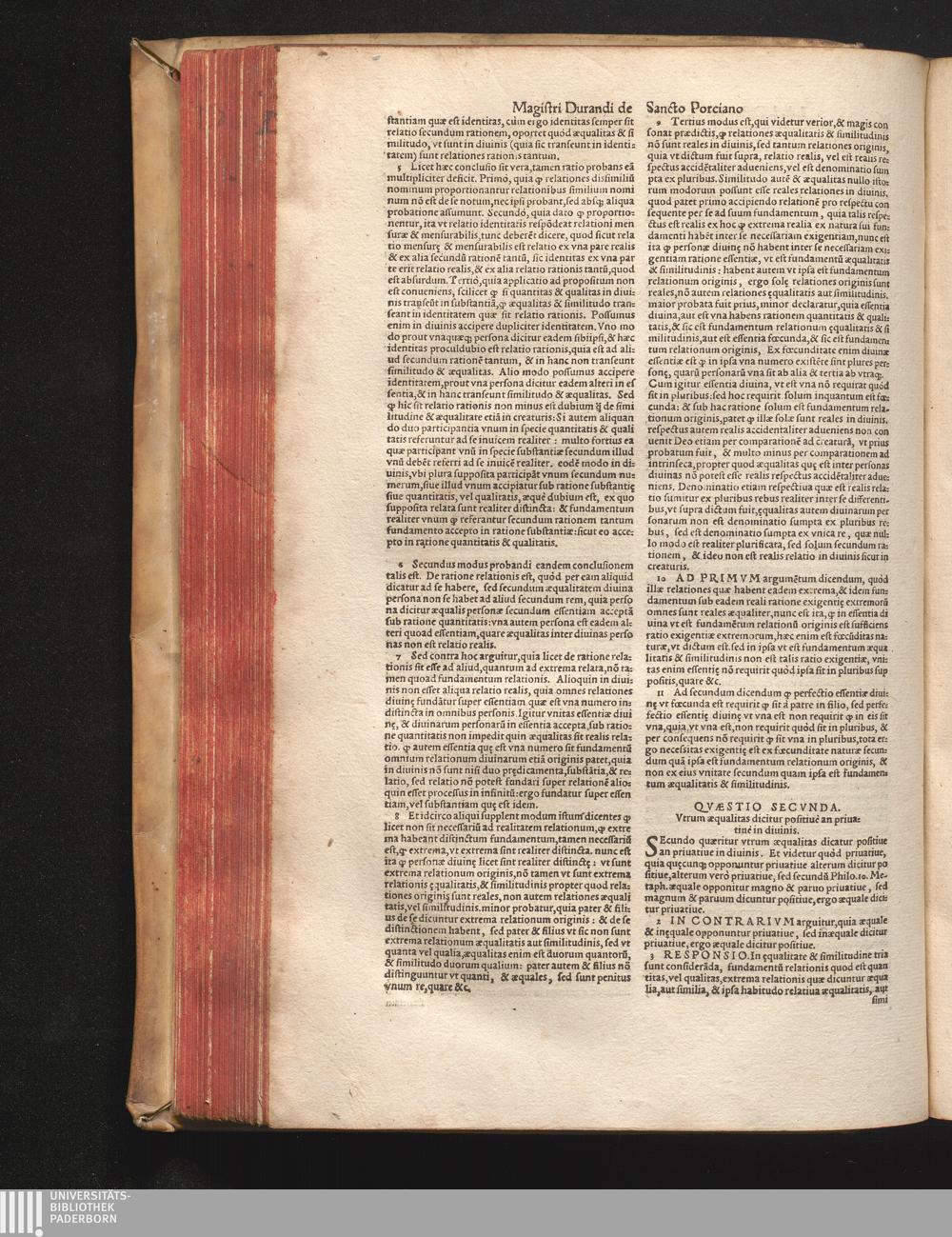 DN. DVRANDI|| à Sancto Portiano, in Senten=||tias Theologicas Petri Lombardi|| Commentariorum libri|| quatuor.|| / Primùm quidem per Nicolaum à Martimbos, eximium Nauarrensis|| Collegij Theologum, nunc verò denuo per alios quosdam|| non inferioris notæ Doctores quanta fieri po-||tuit cura diligentiáque emendati.|| Vná cum Auctoris Vita, & copiosissimo|| decisionum omnium|| Indice.||