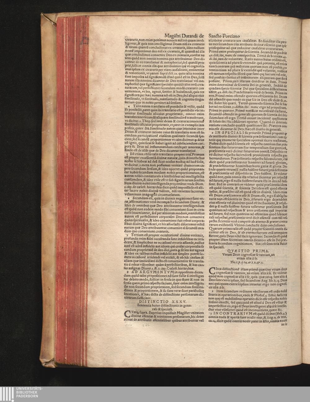 DN. DVRANDI|| à Sancto Portiano, in Senten=||tias Theologicas Petri Lombardi|| Commentariorum libri|| quatuor.|| / Primùm quidem per Nicolaum à Martimbos, eximium Nauarrensis|| Collegij Theologum, nunc verò denuo per alios quosdam|| non inferioris notæ Doctores quanta fieri po-||tuit cura diligentiáque emendati.|| Vná cum Auctoris Vita, & copiosissimo|| decisionum omnium|| Indice.||