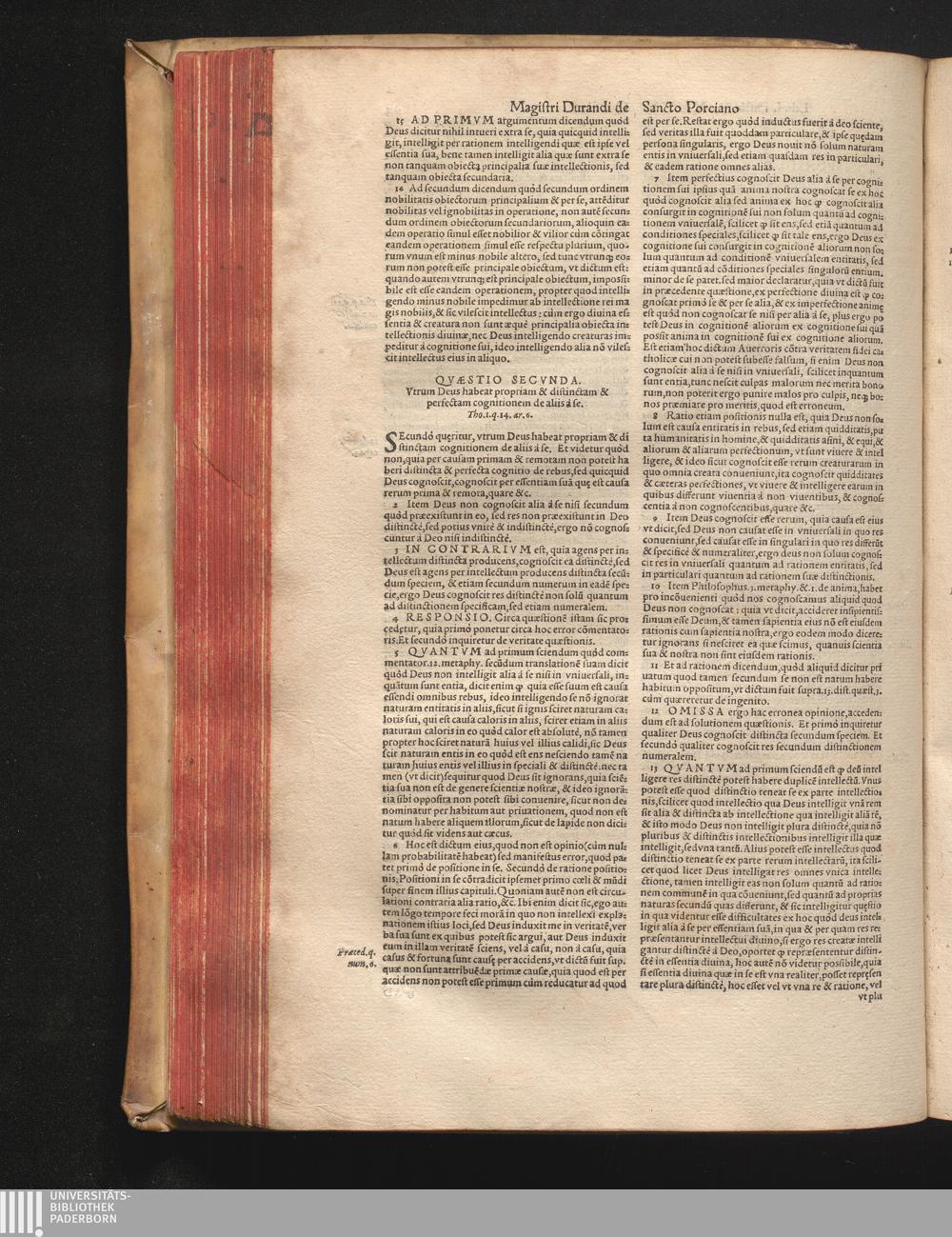 DN. DVRANDI|| à Sancto Portiano, in Senten=||tias Theologicas Petri Lombardi|| Commentariorum libri|| quatuor.|| / Primùm quidem per Nicolaum à Martimbos, eximium Nauarrensis|| Collegij Theologum, nunc verò denuo per alios quosdam|| non inferioris notæ Doctores quanta fieri po-||tuit cura diligentiáque emendati.|| Vná cum Auctoris Vita, & copiosissimo|| decisionum omnium|| Indice.||