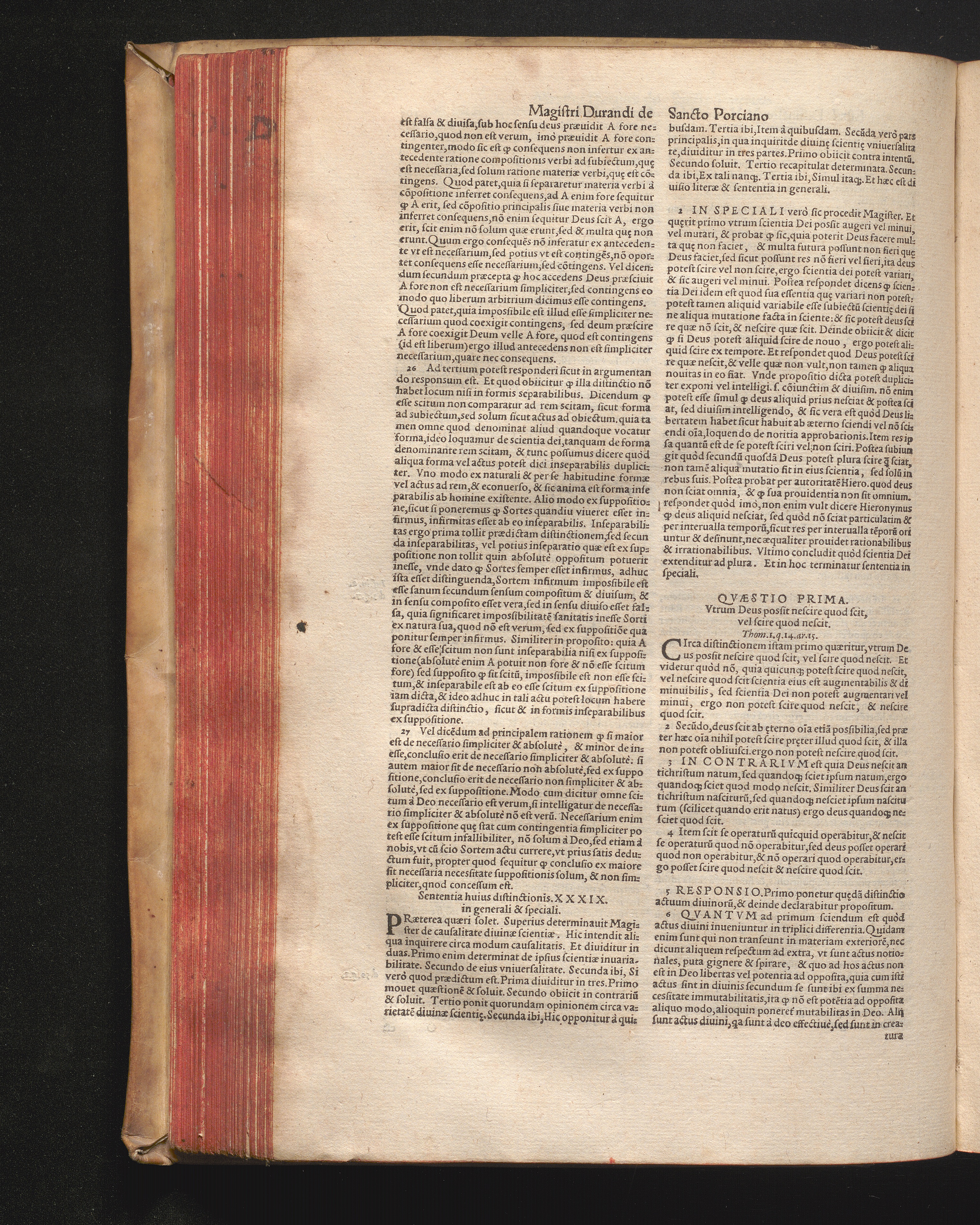 DN. DVRANDI|| à Sancto Portiano, in Senten=||tias Theologicas Petri Lombardi|| Commentariorum libri|| quatuor.|| / Primùm quidem per Nicolaum à Martimbos, eximium Nauarrensis|| Collegij Theologum, nunc verò denuo per alios quosdam|| non inferioris notæ Doctores quanta fieri po-||tuit cura diligentiáque emendati.|| Vná cum Auctoris Vita, & copiosissimo|| decisionum omnium|| Indice.||